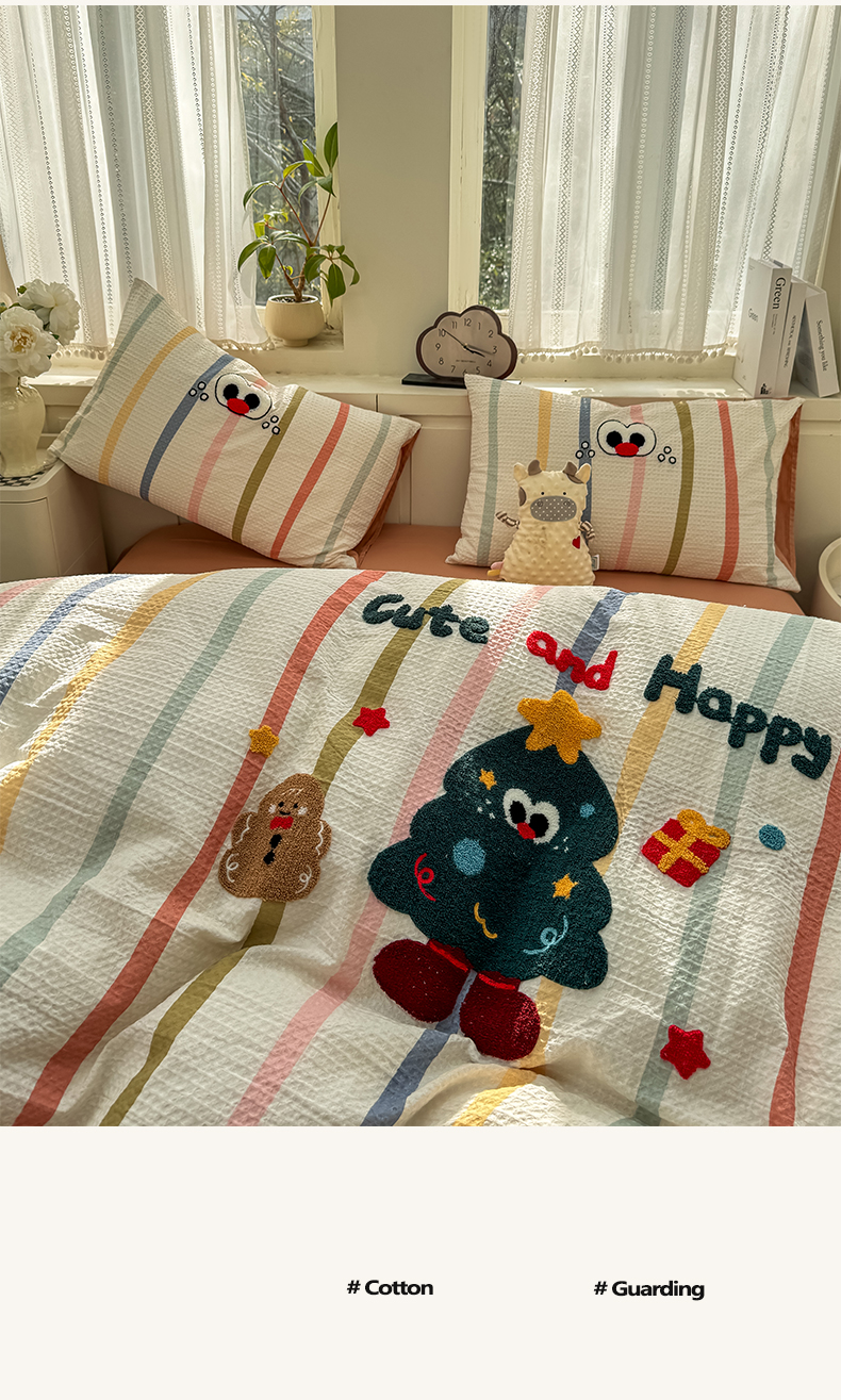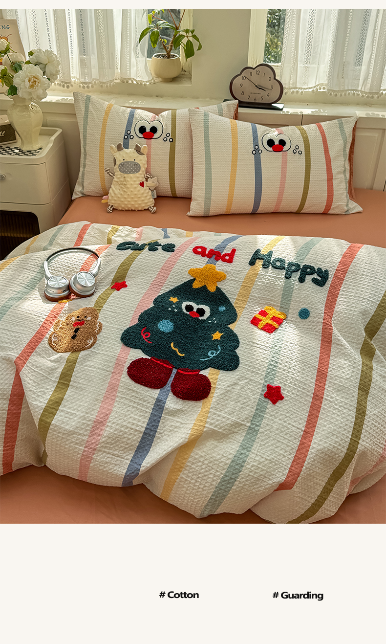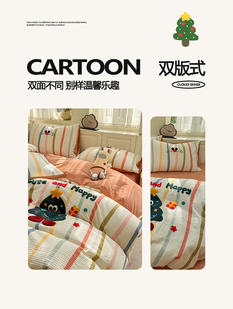 (总)宜家坊 2026直播热款卡通贴布绣加厚仿棉古棉单人双人单倍套三四件套,奥特兄妹,吉象三宝,美小蒂,萌萌兔绿,旺旺狗狗,熊猫卡皮