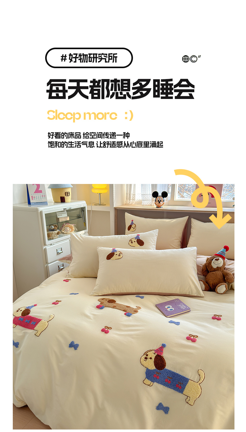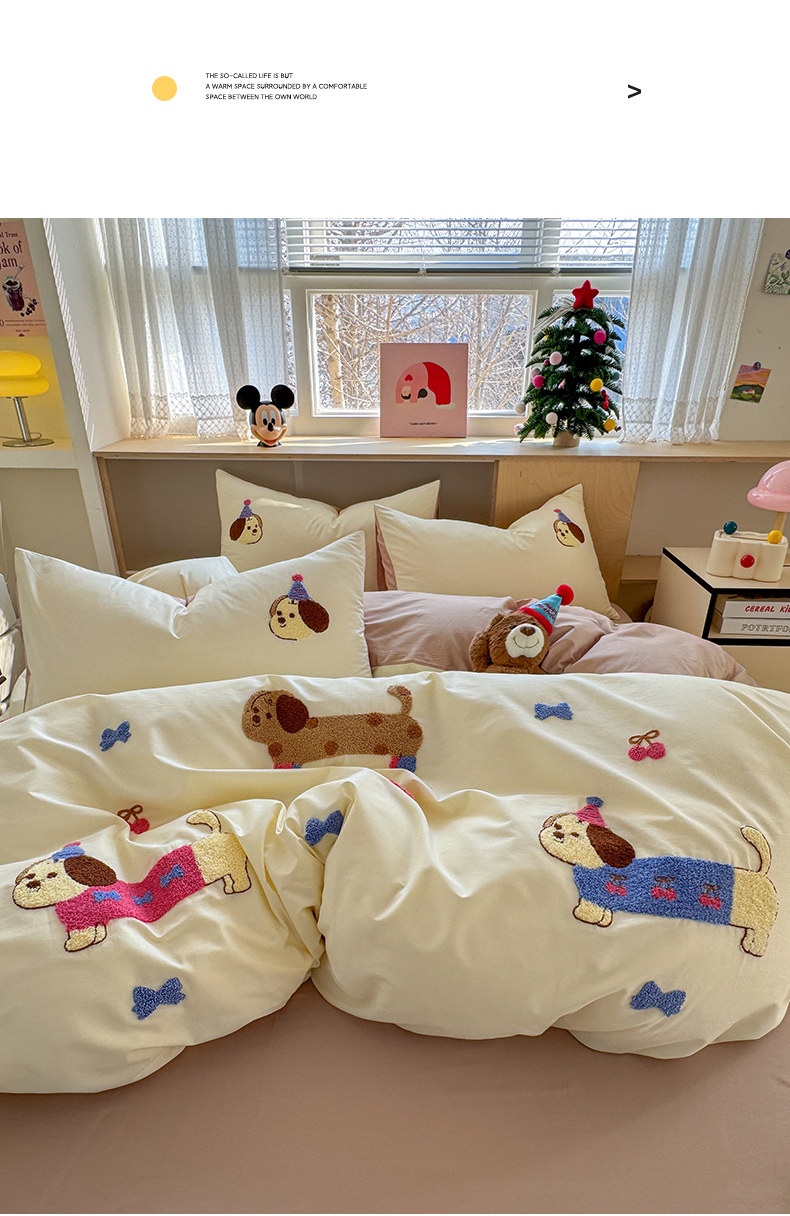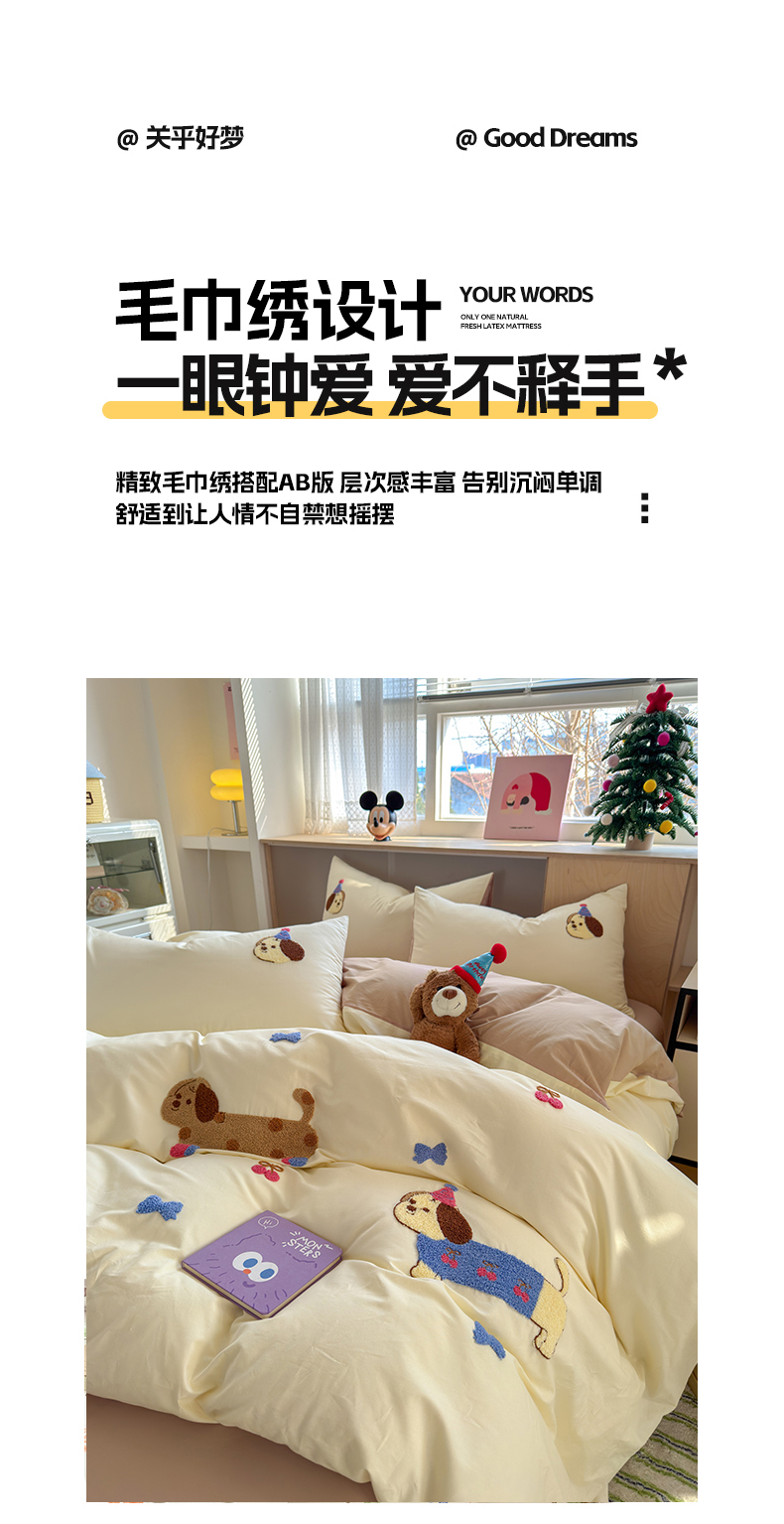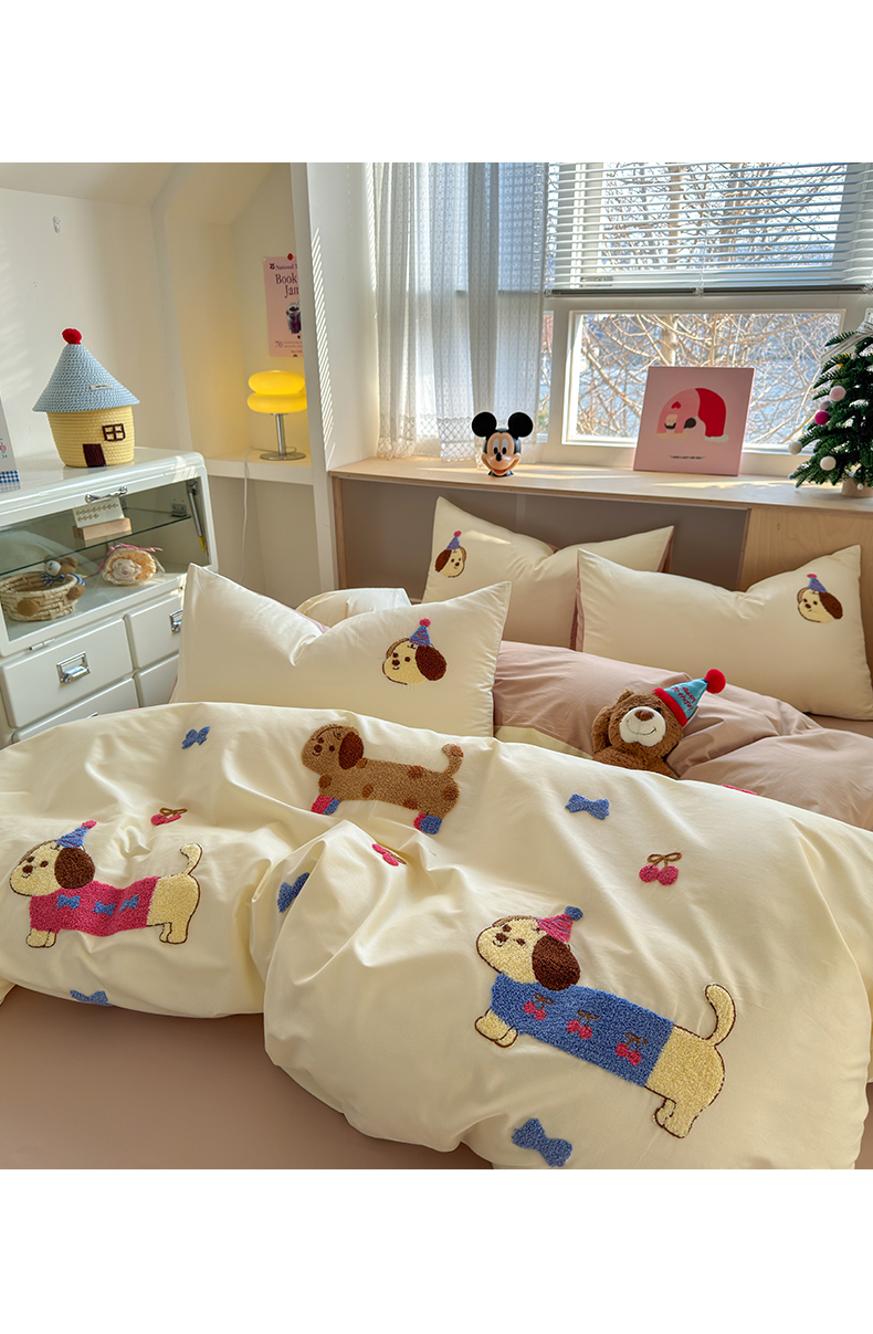 如意朵 2026新款全棉小清新绣花四件套第一批 狗狗家族
