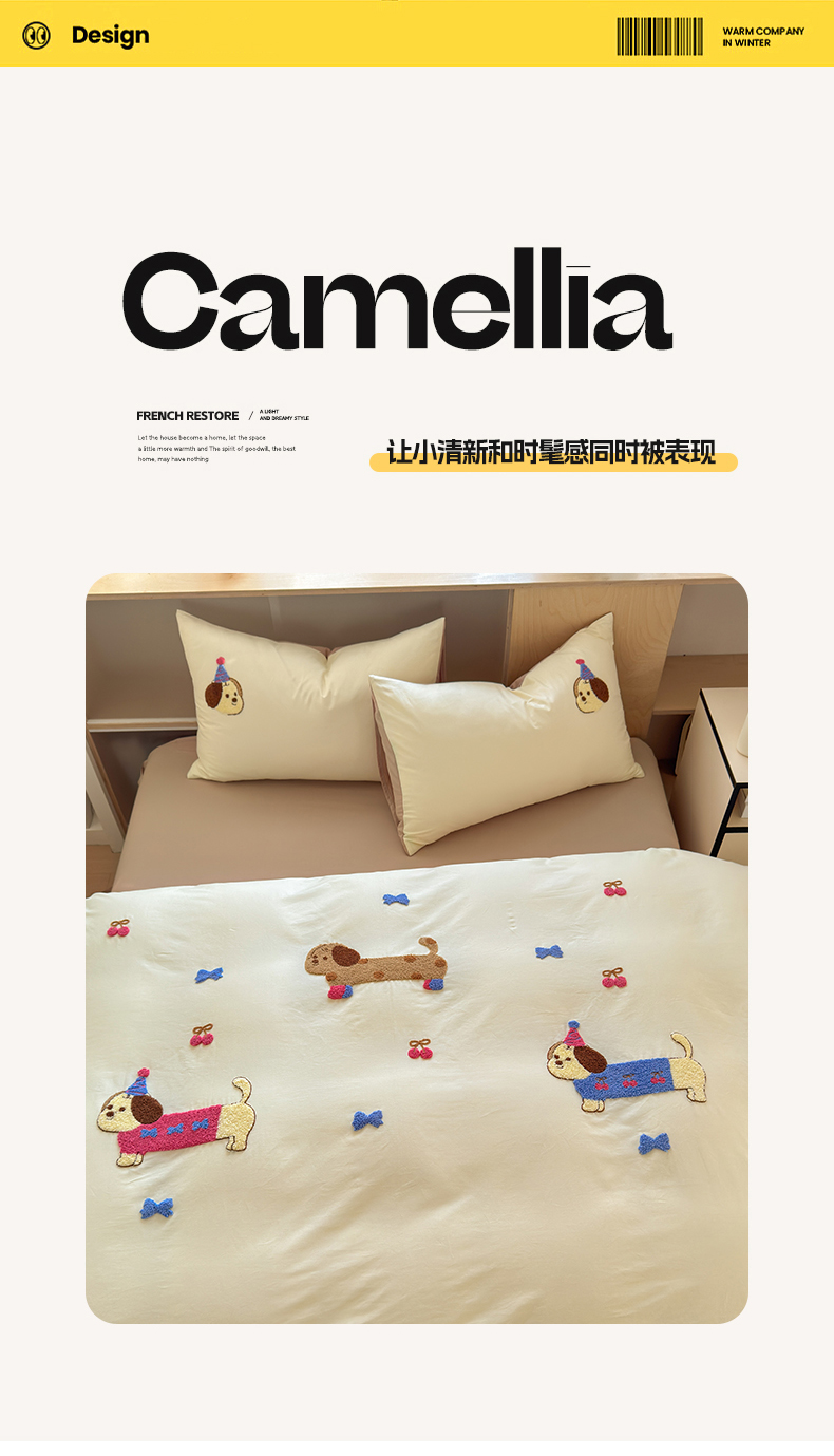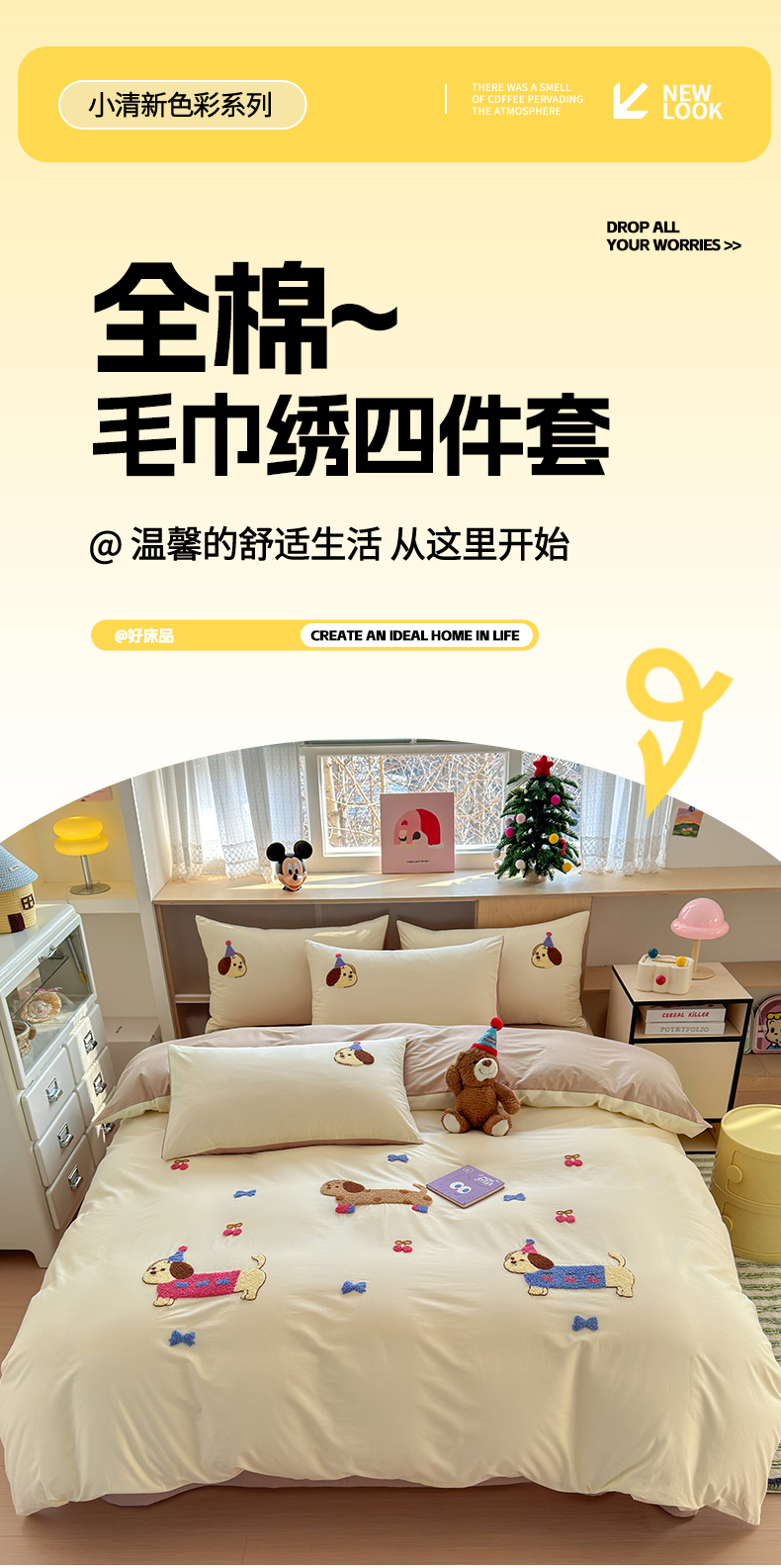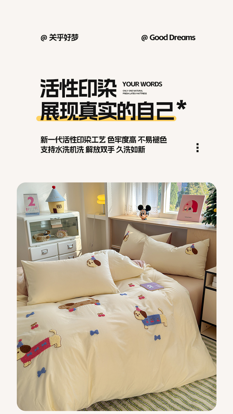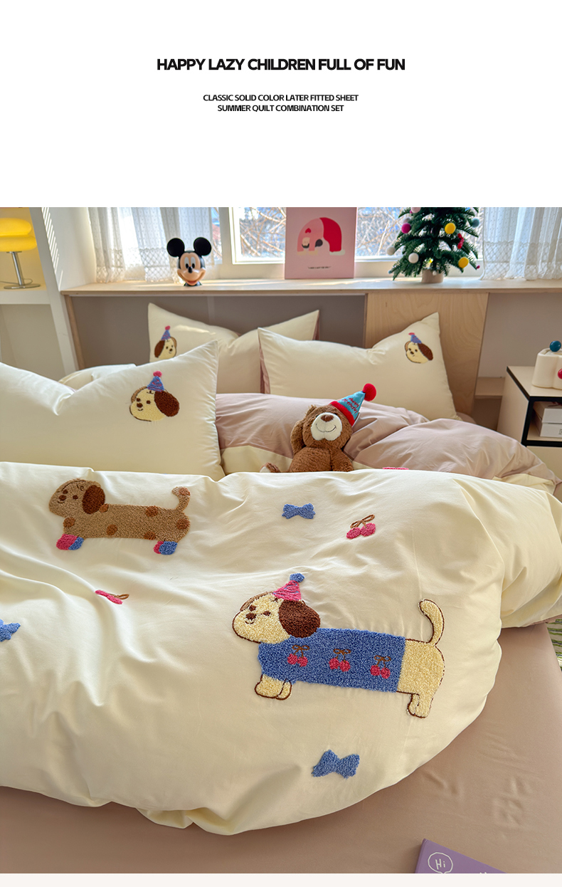 如意朵 2026新款全棉小清新绣花四件套第一批 狗狗家族