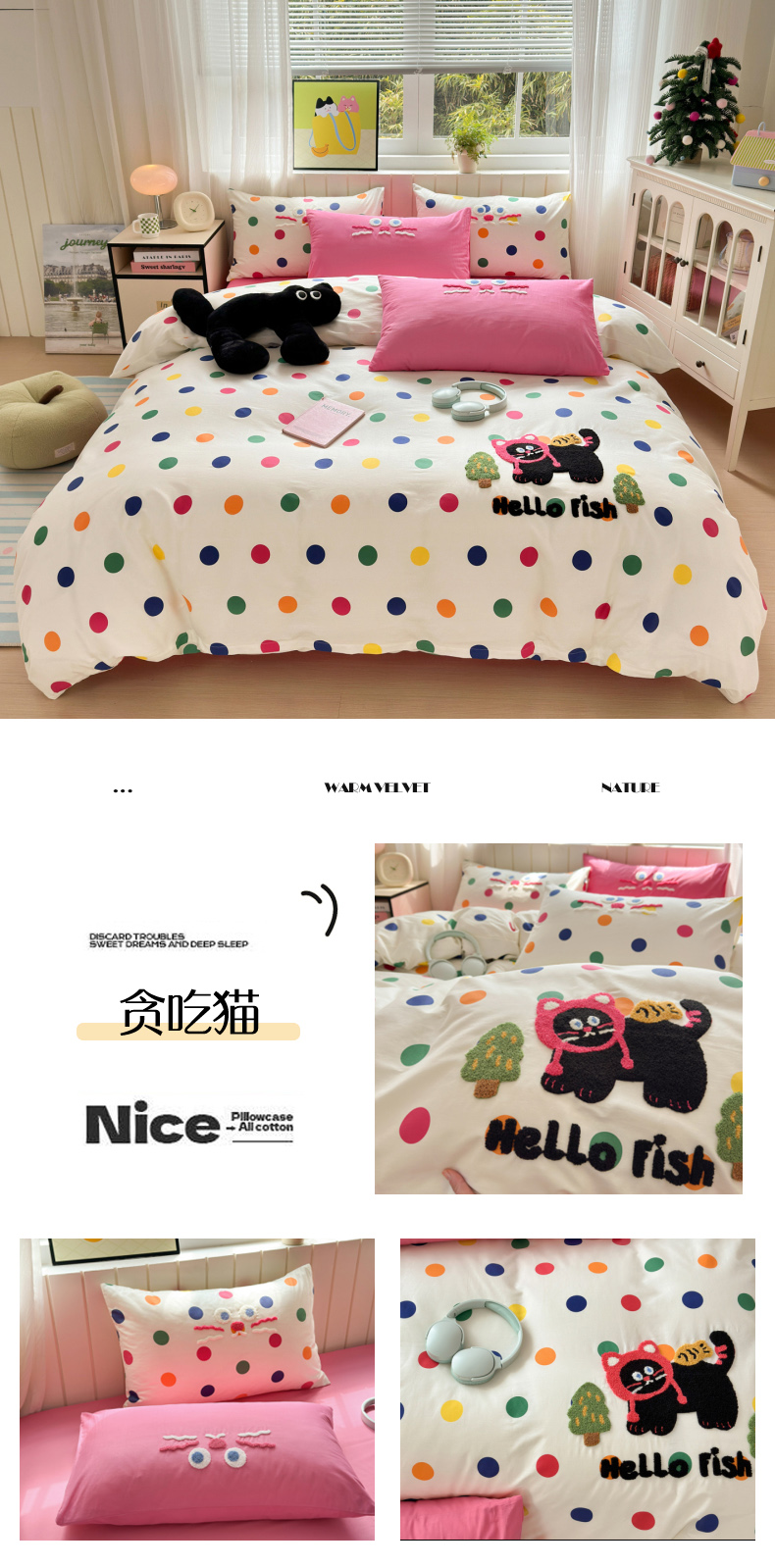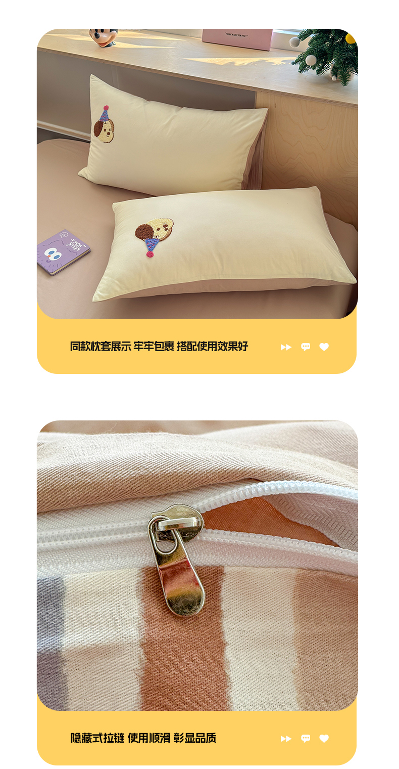 (总)如意朵 2026新款全棉纯棉提花水洗棉绣花四件套(专版花型),开心丫,三只小狗,三只小猫,贪吃卡皮,休闲小猫,抓星熊
