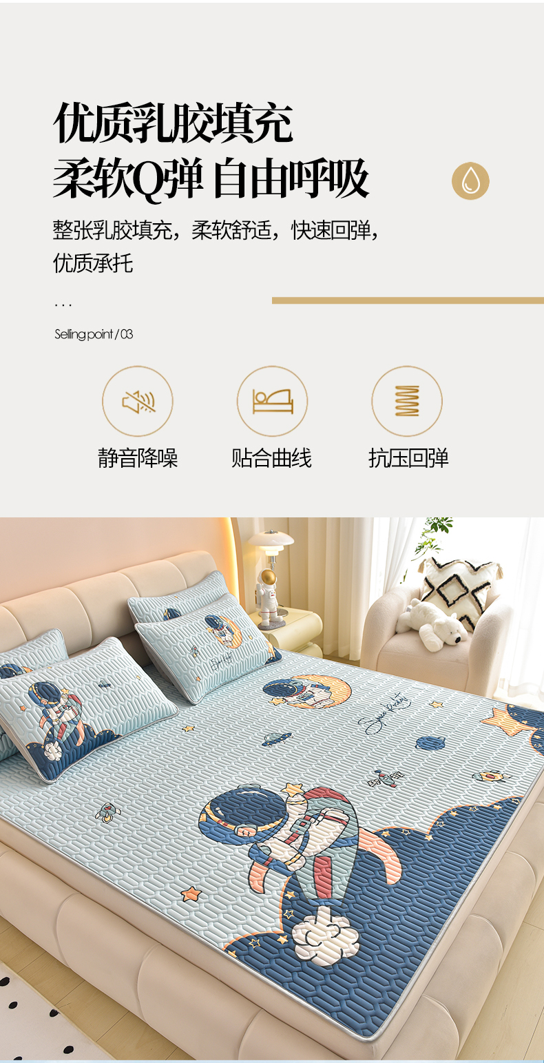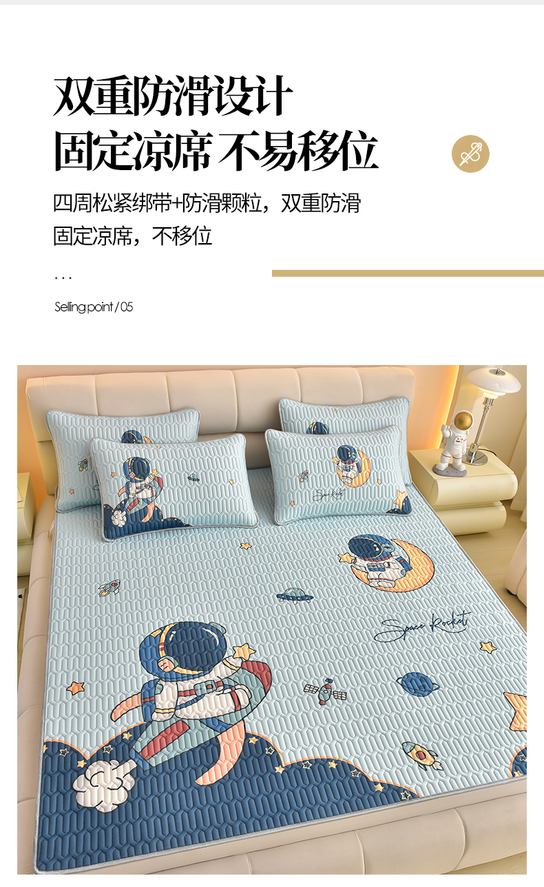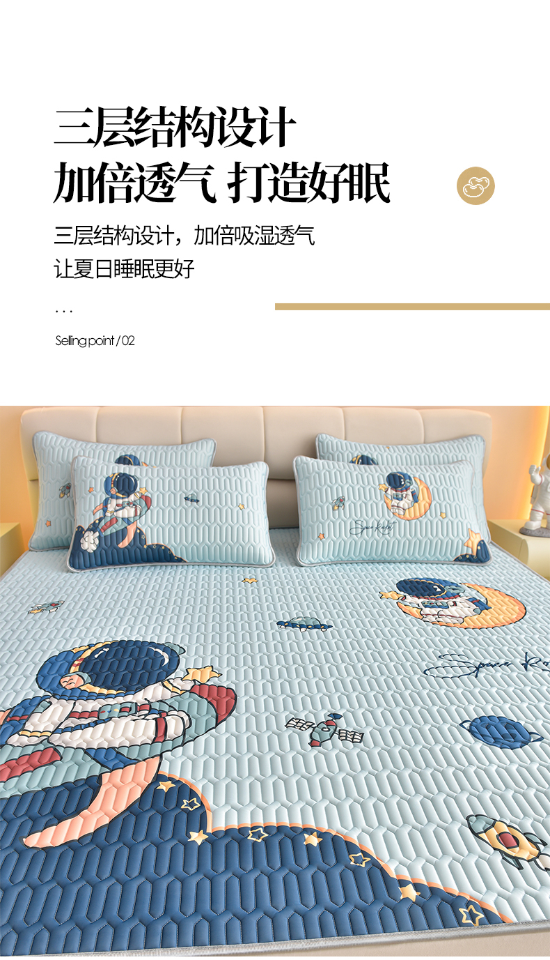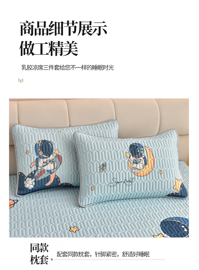商品名称:炫拼家纺 2026新款凉感丝大版卡通乳胶凉席三件套 宇航员