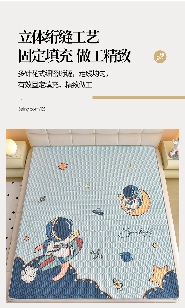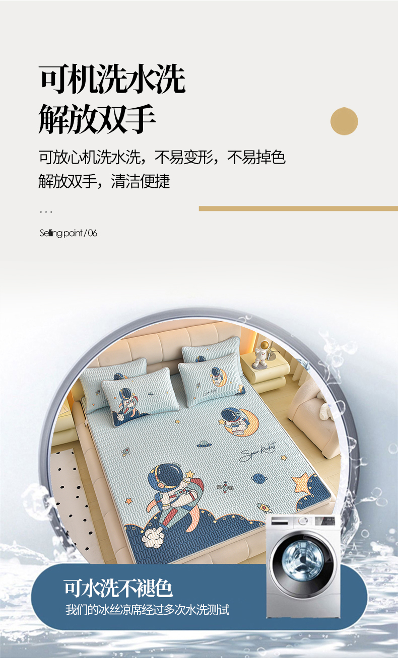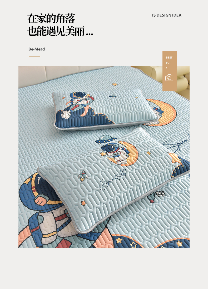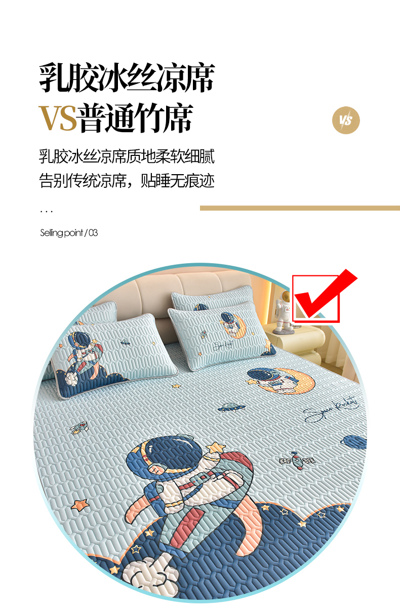 商品名称:炫拼家纺 2026新款凉感丝大版卡通乳胶凉席三件套 宇航员
