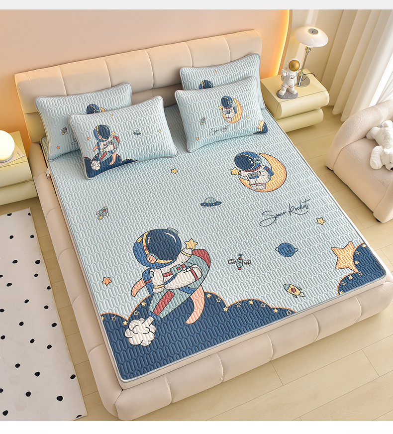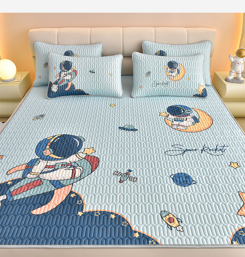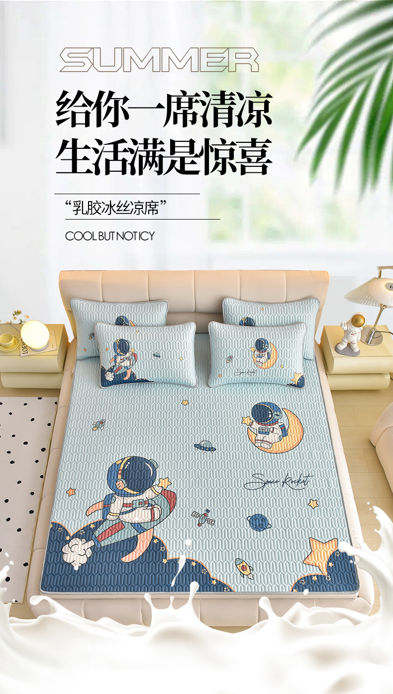 炫拼家纺 2026新款凉感丝大版卡通乳胶凉席三件套 宇航员