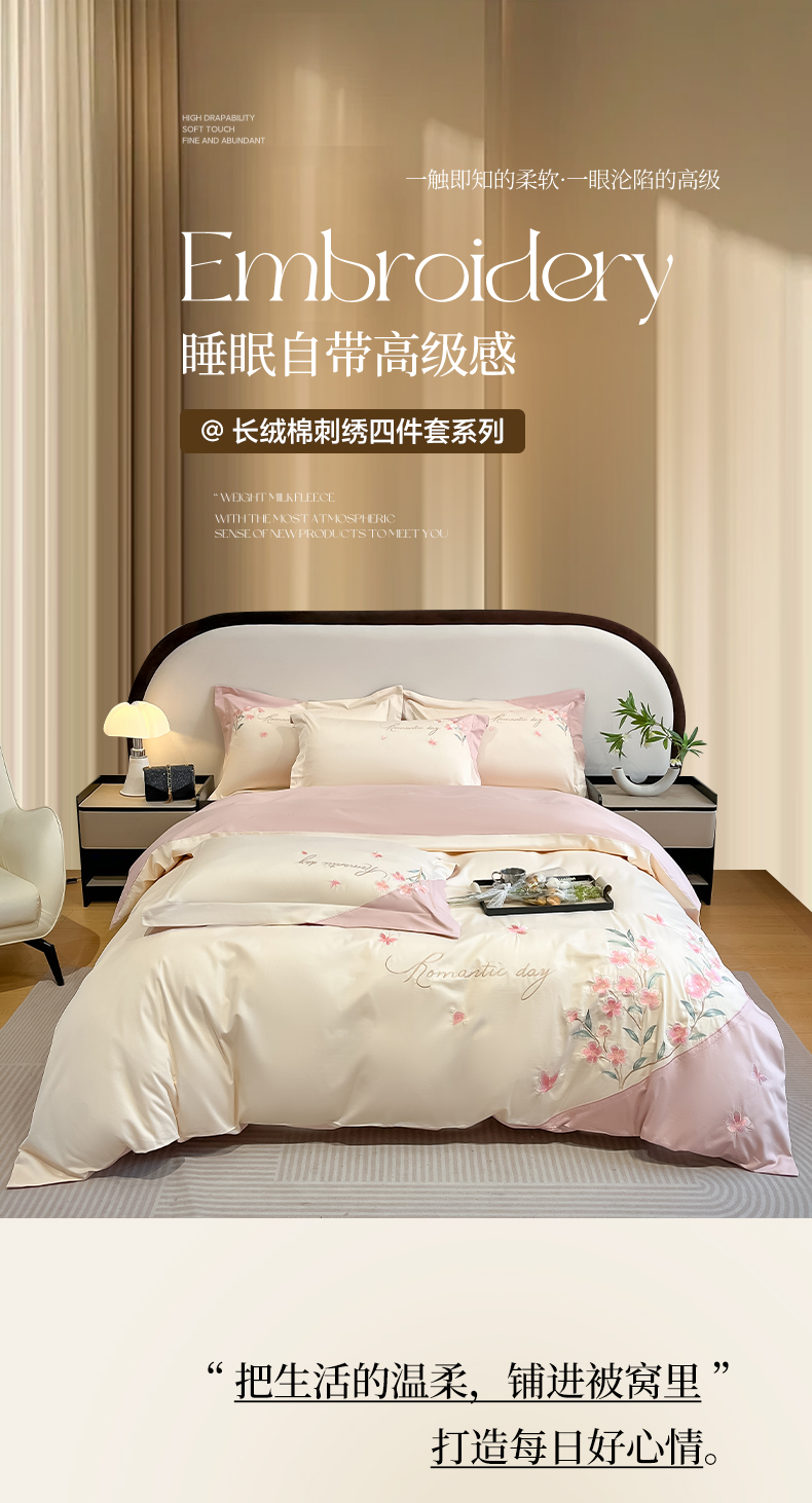 当前位置: 91家纺网 > 商品网购 > 床品套件 > 四件套 > 长绒棉四件套 > (总)桃园 新品纯棉全棉长绒棉刺绣绣花高端礼盒四件套-花语
