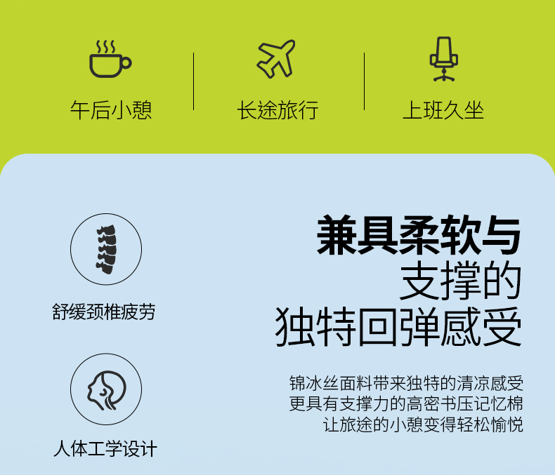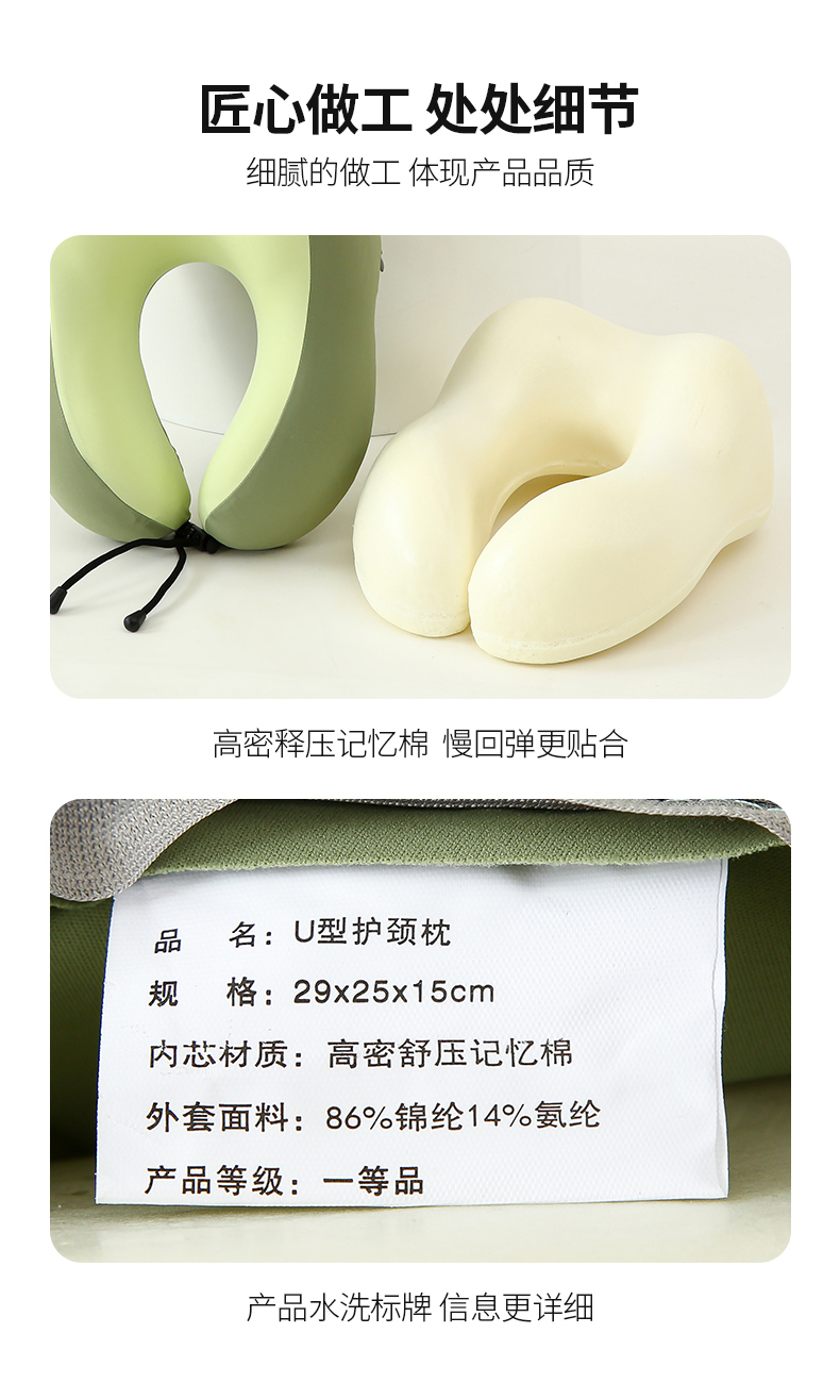 当前位置: 91家纺网 > 商品网购 > 枕头/枕芯/保健枕/颈椎枕 > 普通枕芯 > 仁宇枕业 2026新款夏季凉感锦冰丝护颈颈椎U型枕午休旅行记忆棉凉感U枕头枕芯 锦冰丝u型枕-绿色 29x26x14cm