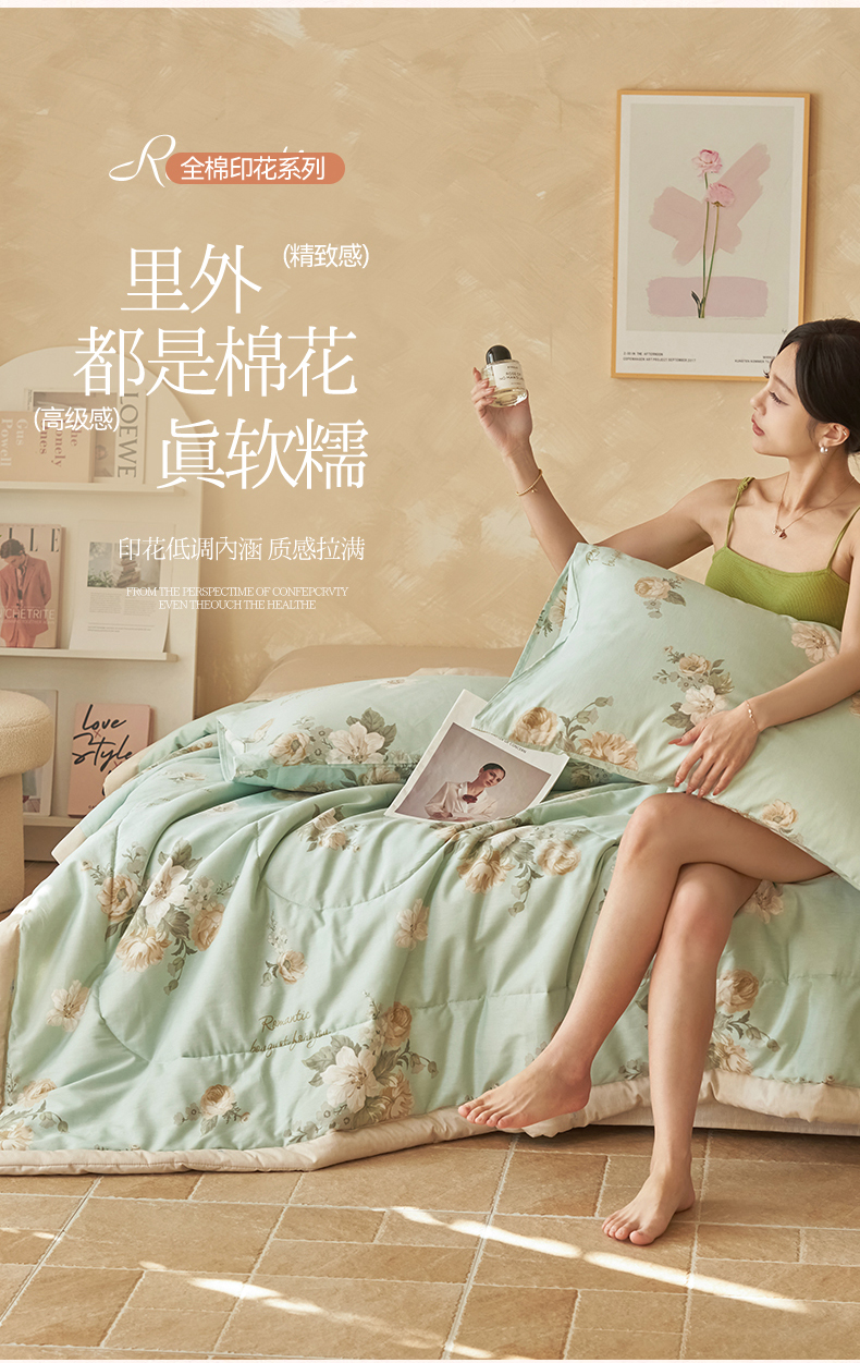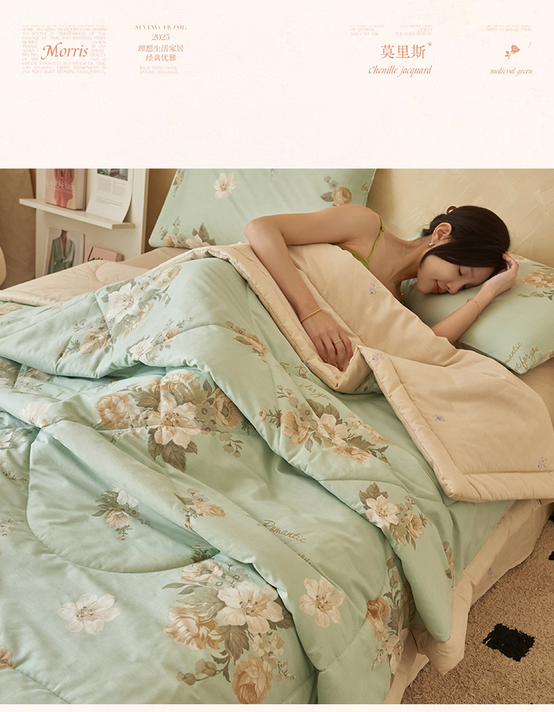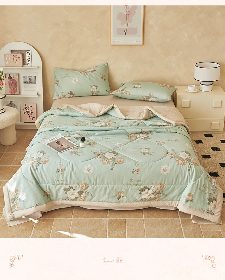 • 91家纺网 家纺一手货源 找家纺 (总)恬思语家纺 2026春夏新品莱赛尔天丝印花蚕丝夏被夏凉被空调被,绮梦-玉,幸福里-绿