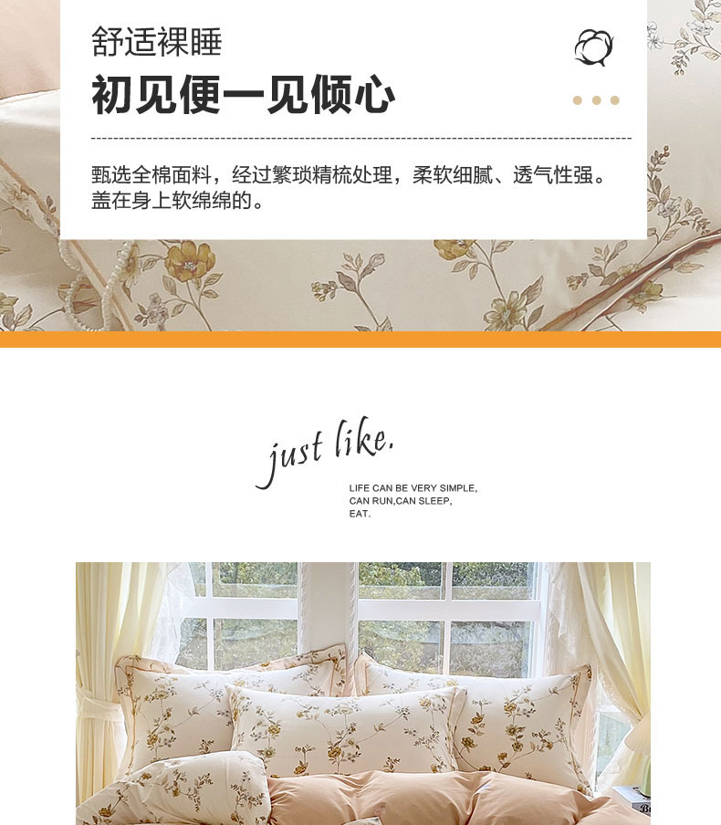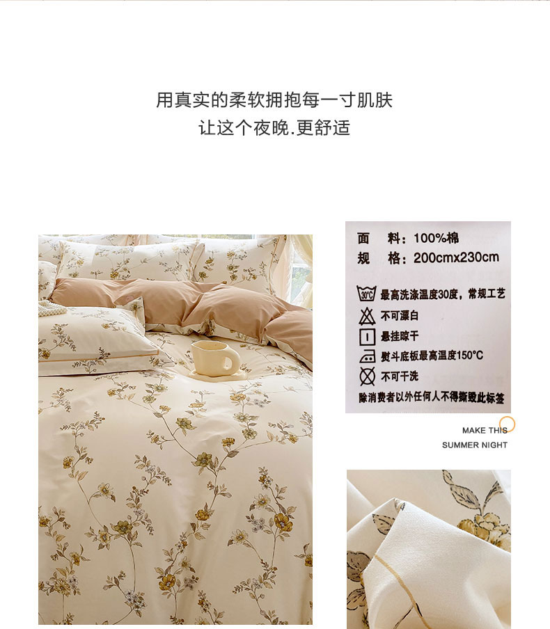 当前位置: 91家纺网 > 商品网购 > 床品套件 > 四件套 > 全棉普通四件套 > 星期三家纺 2026春夏新款铂金全棉纯棉13372印花四件套 月影-黄