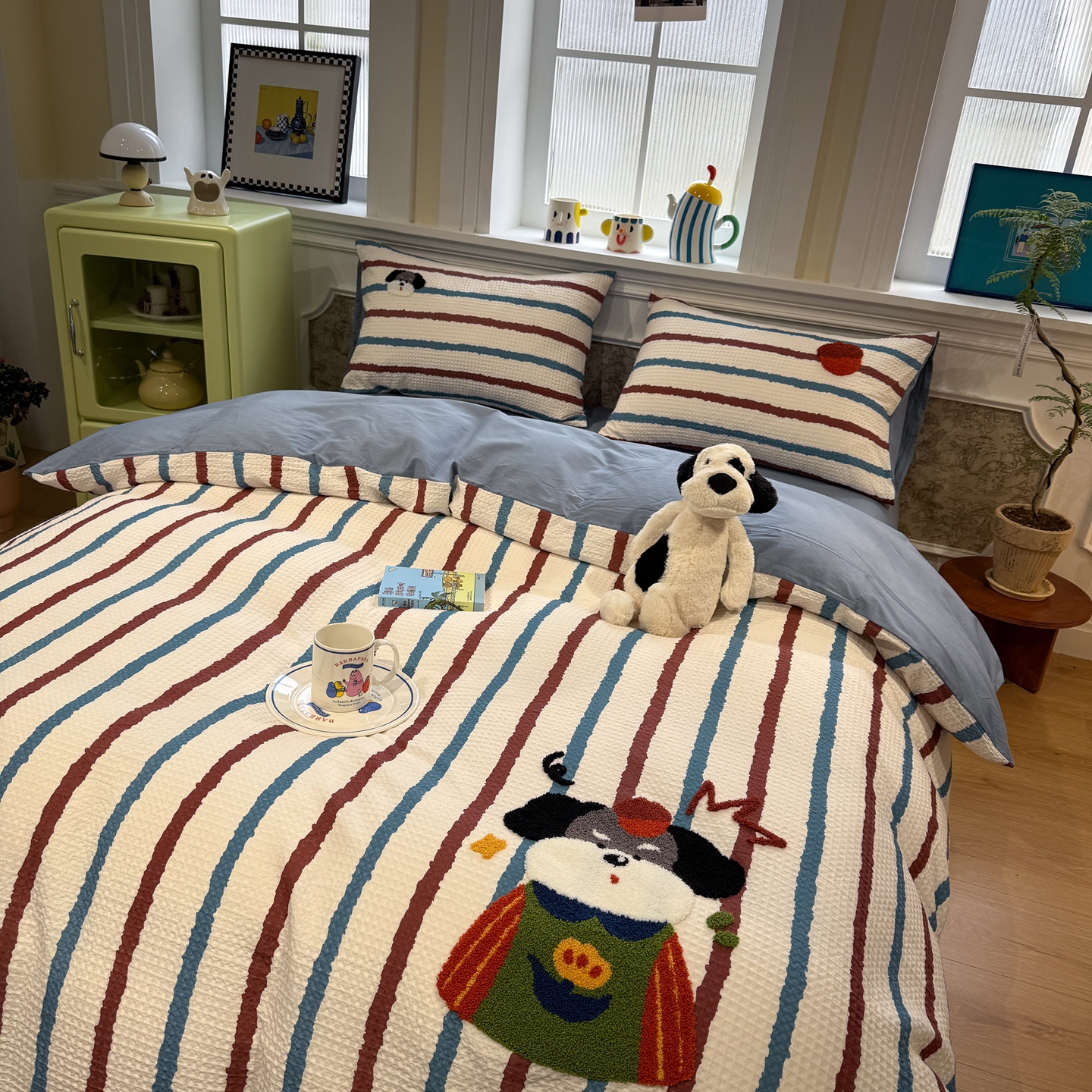 当前位置: 91家纺网 > 商品网购 > 床品套件 > 四件套 > 毛巾绣四件套 > 珺柔家纺 2026新款卡通华夫格毛巾绣四件套 音乐小猫