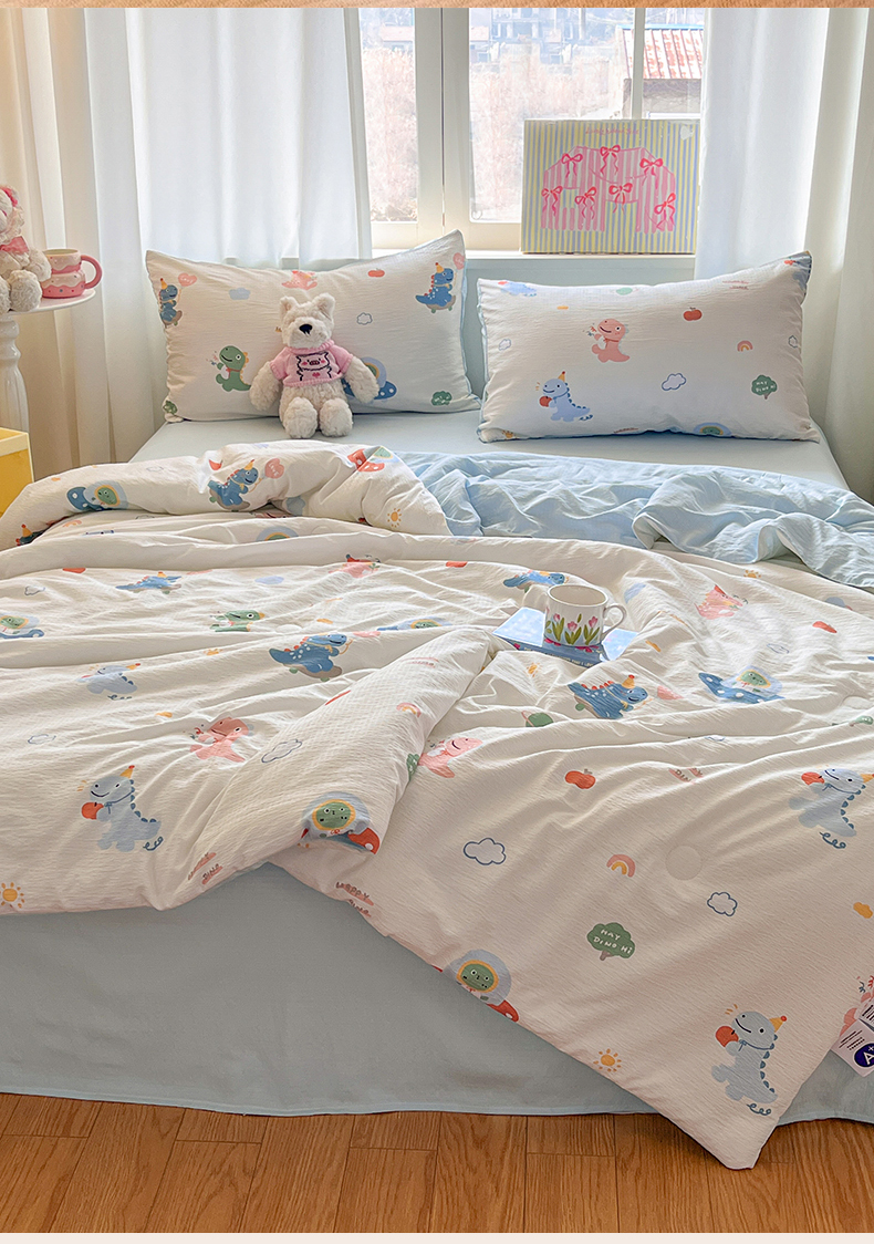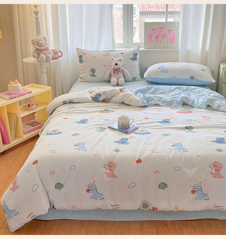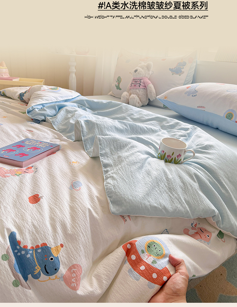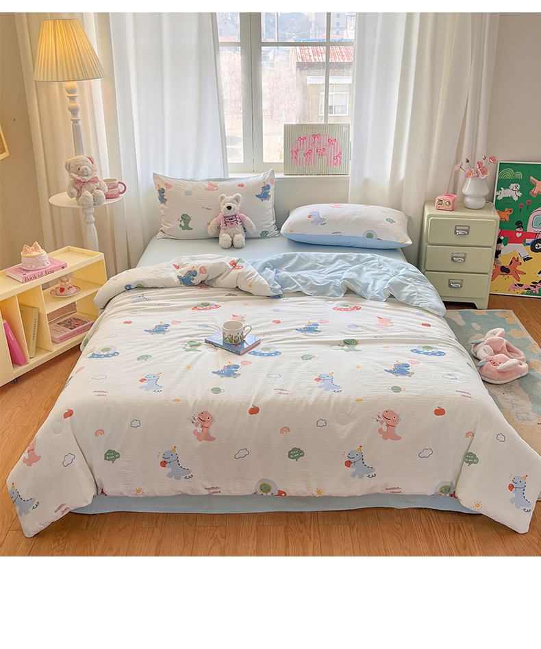盛秋家纺 2026新款皱皱纱印花夏被-萝拉 恐龙游记+天空蓝