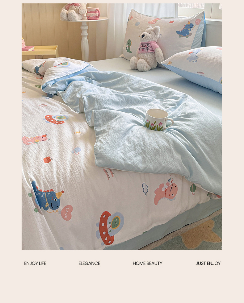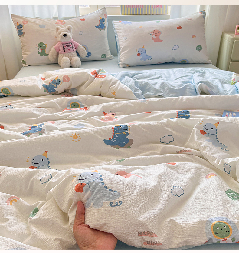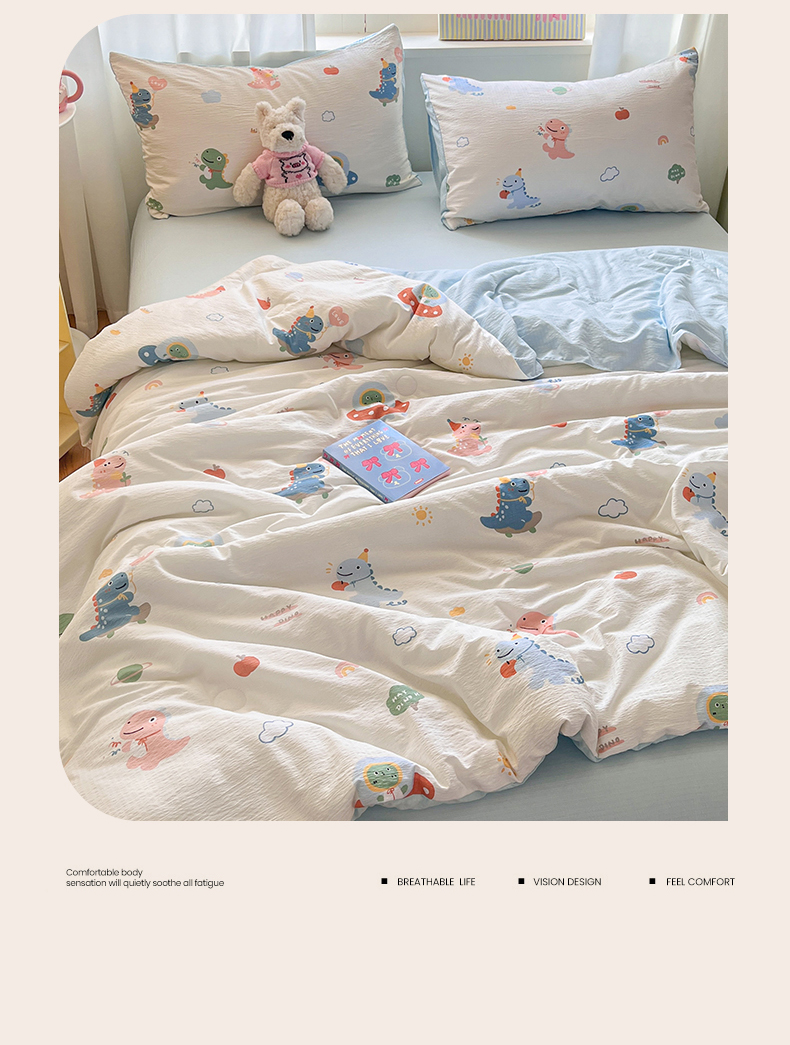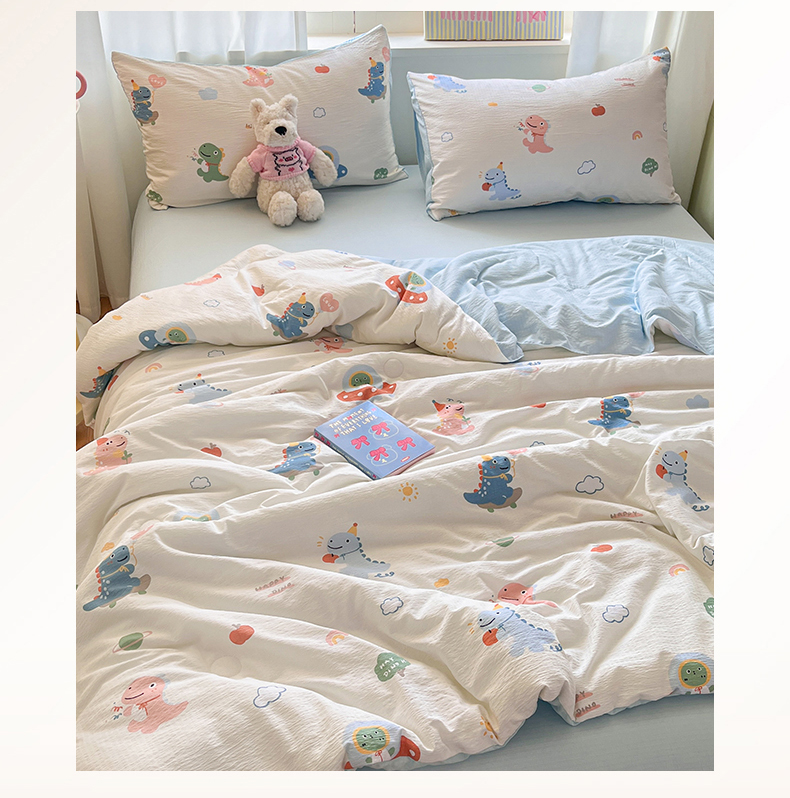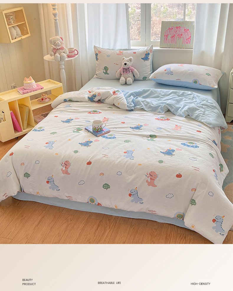 盛秋家纺 2026新款皱皱纱印花夏被-萝拉 恐龙游记+天空蓝