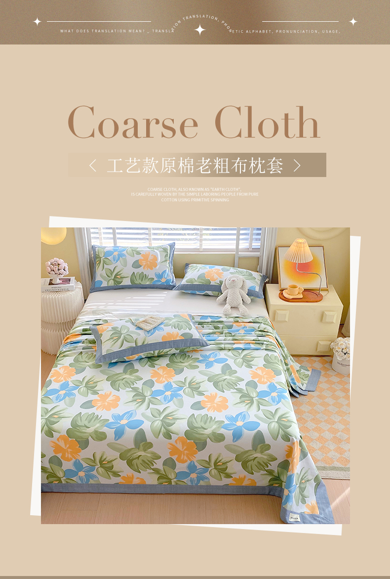 商品名称:春皖家纺 2026新款全棉老粗布工艺款单枕套枕套单件 茶心