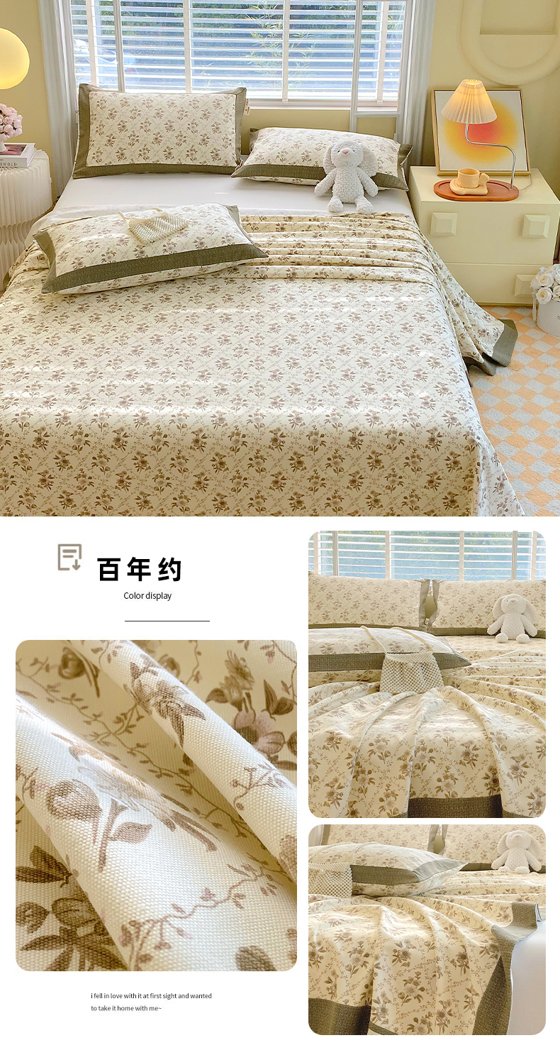 (总)春皖家纺 2024新款竹纤维绣花床单凉席风格一,流星蓝,浅藕粉,淡雅绿,苍岭绿,雅岩灰,霞光紫