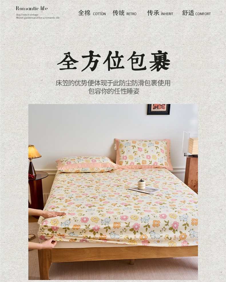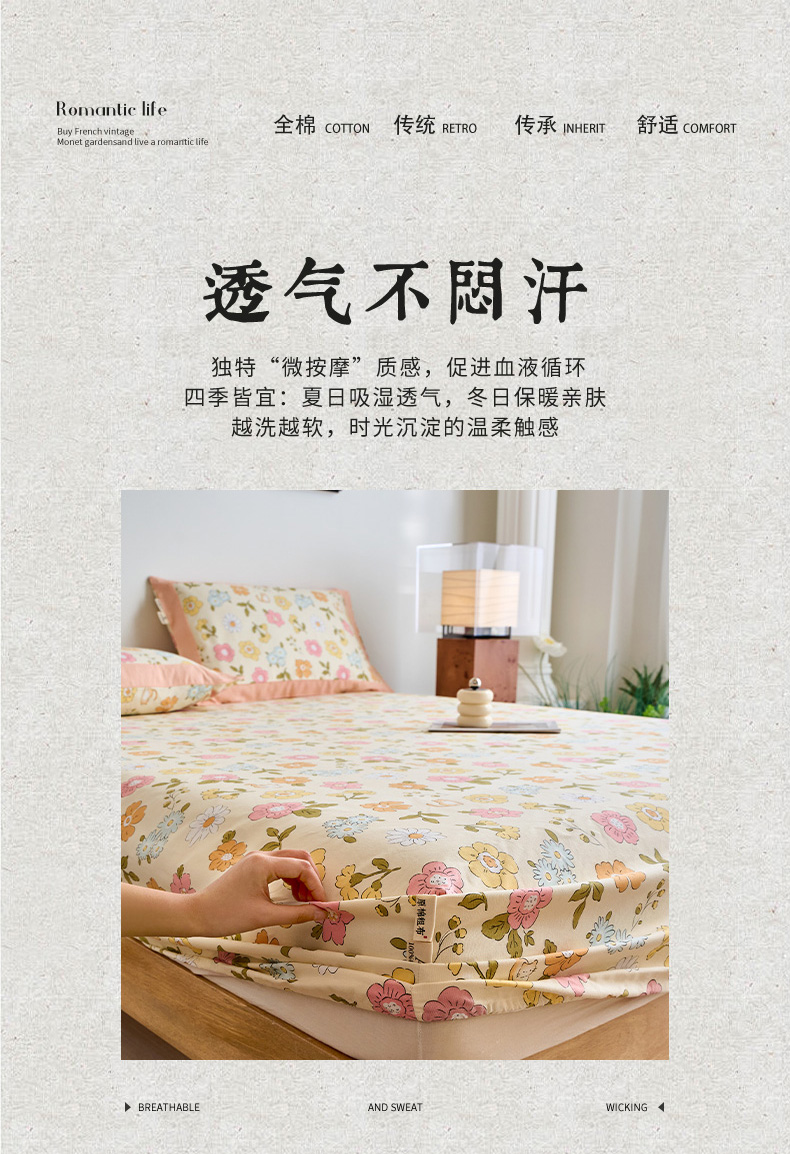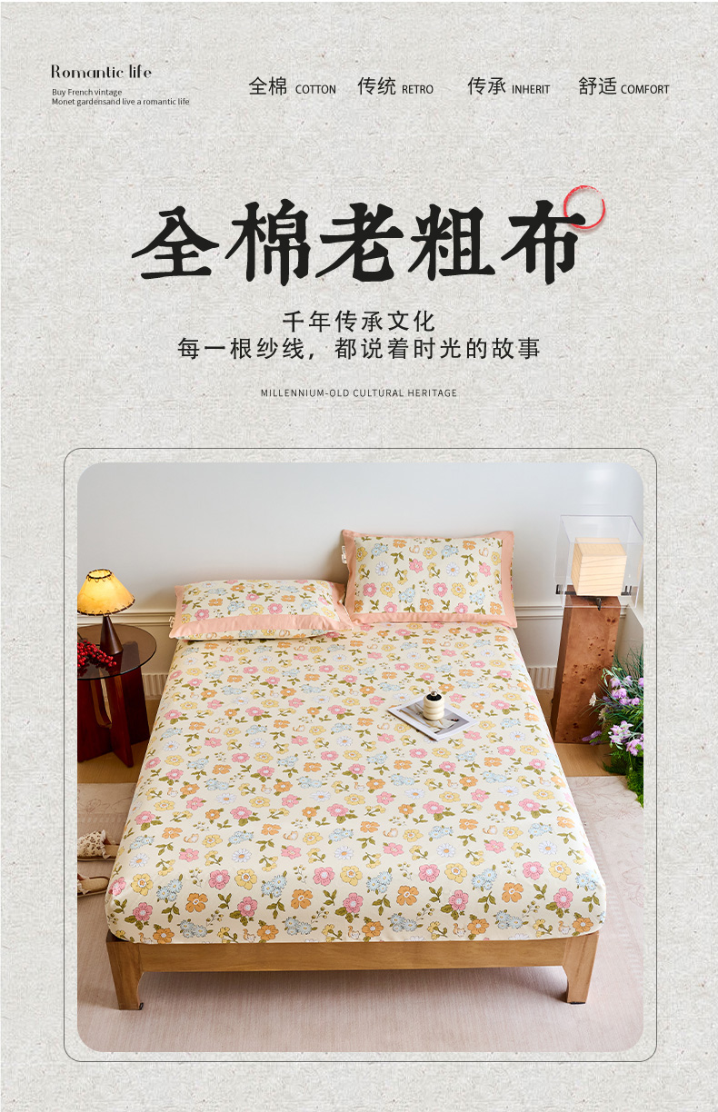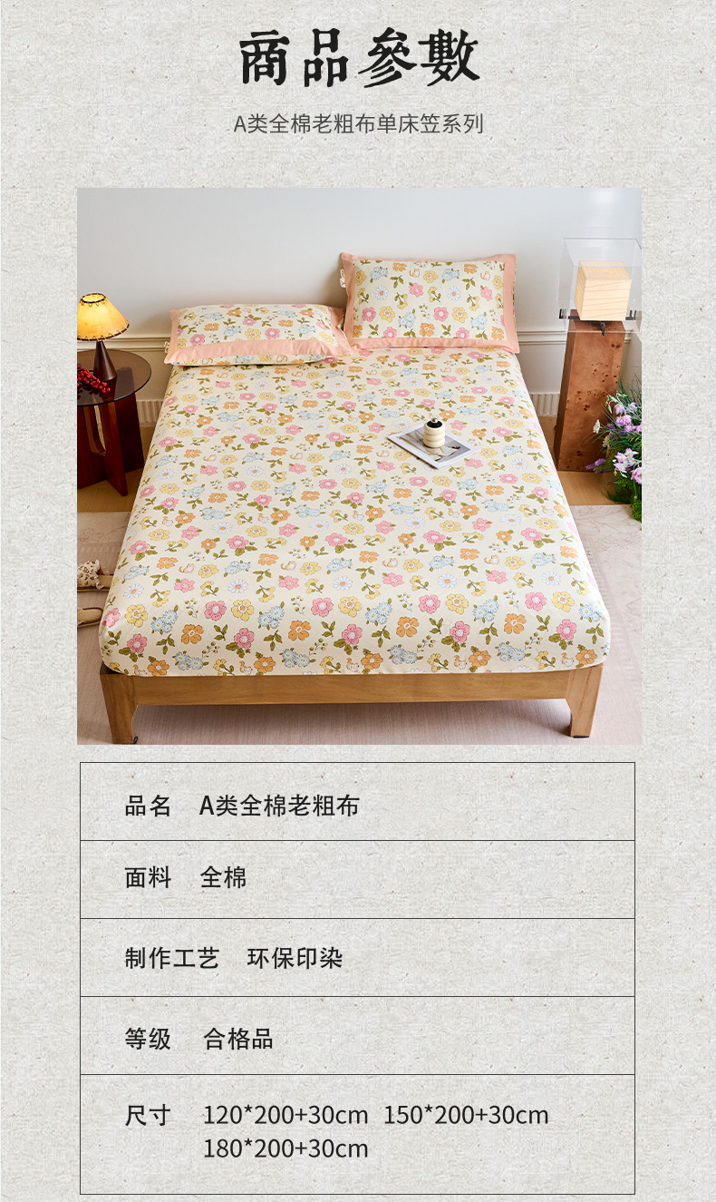 春皖家纺 2026新款全棉老粗布工艺款单床笠床笠单件 繁华
