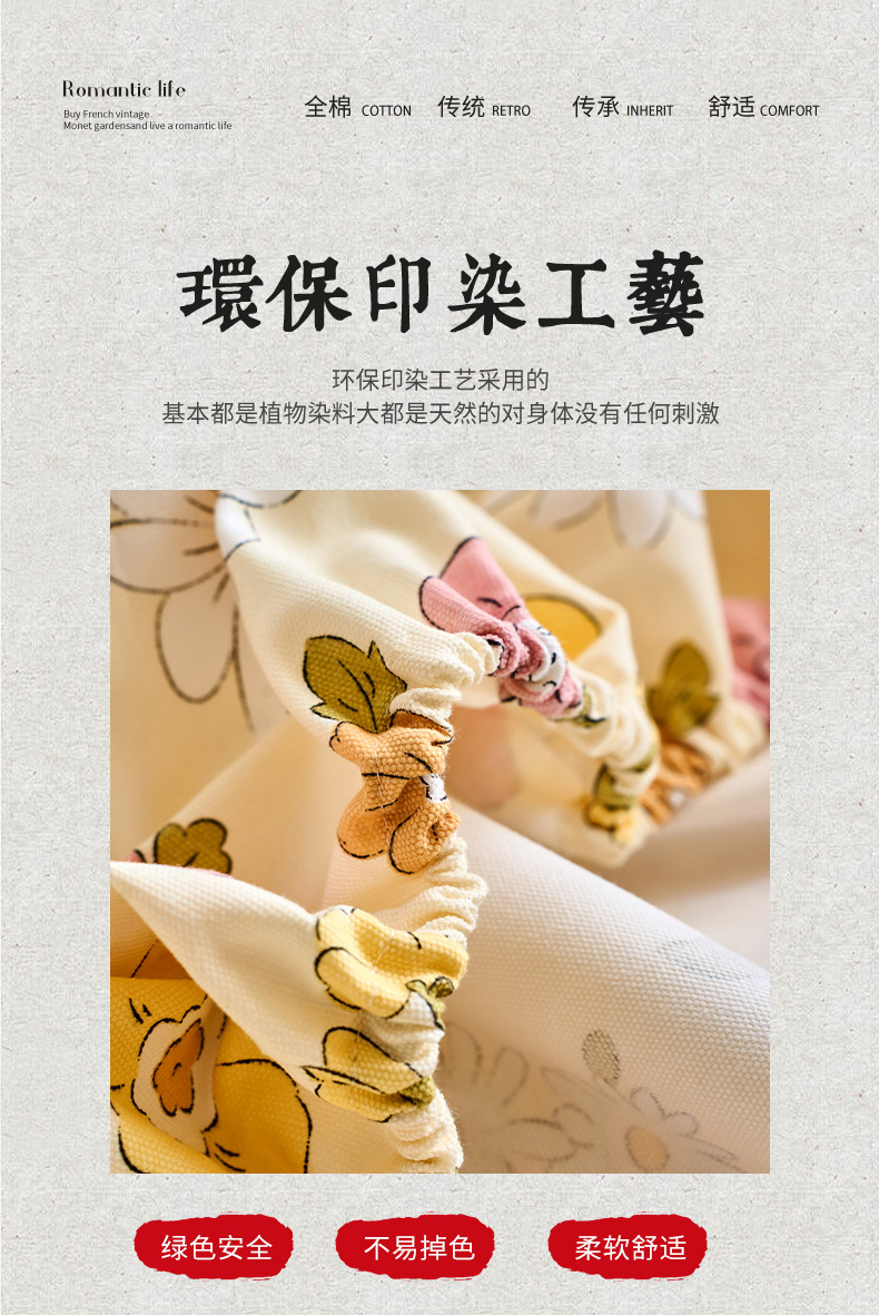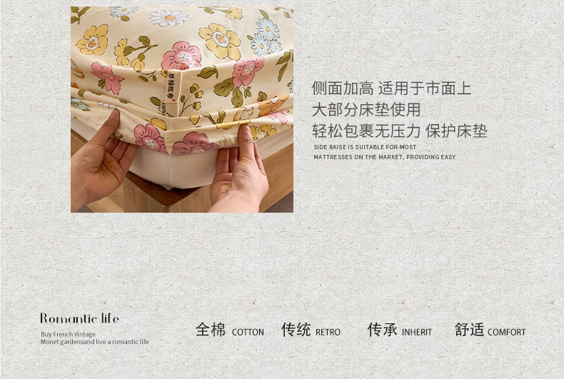 商品名称:春皖家纺 2026新款全棉老粗布工艺款单床笠床笠单件 繁华