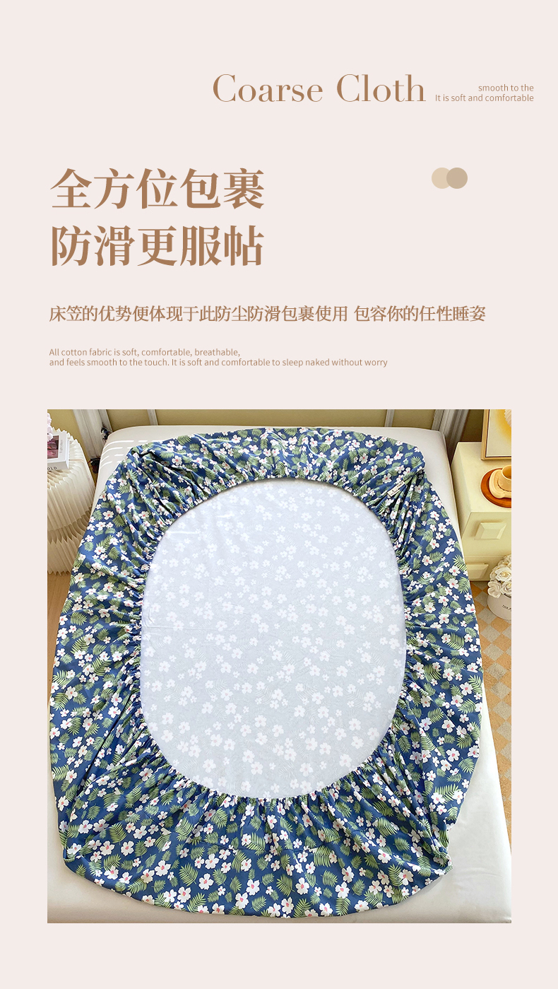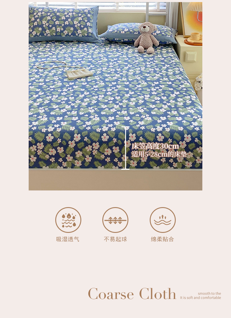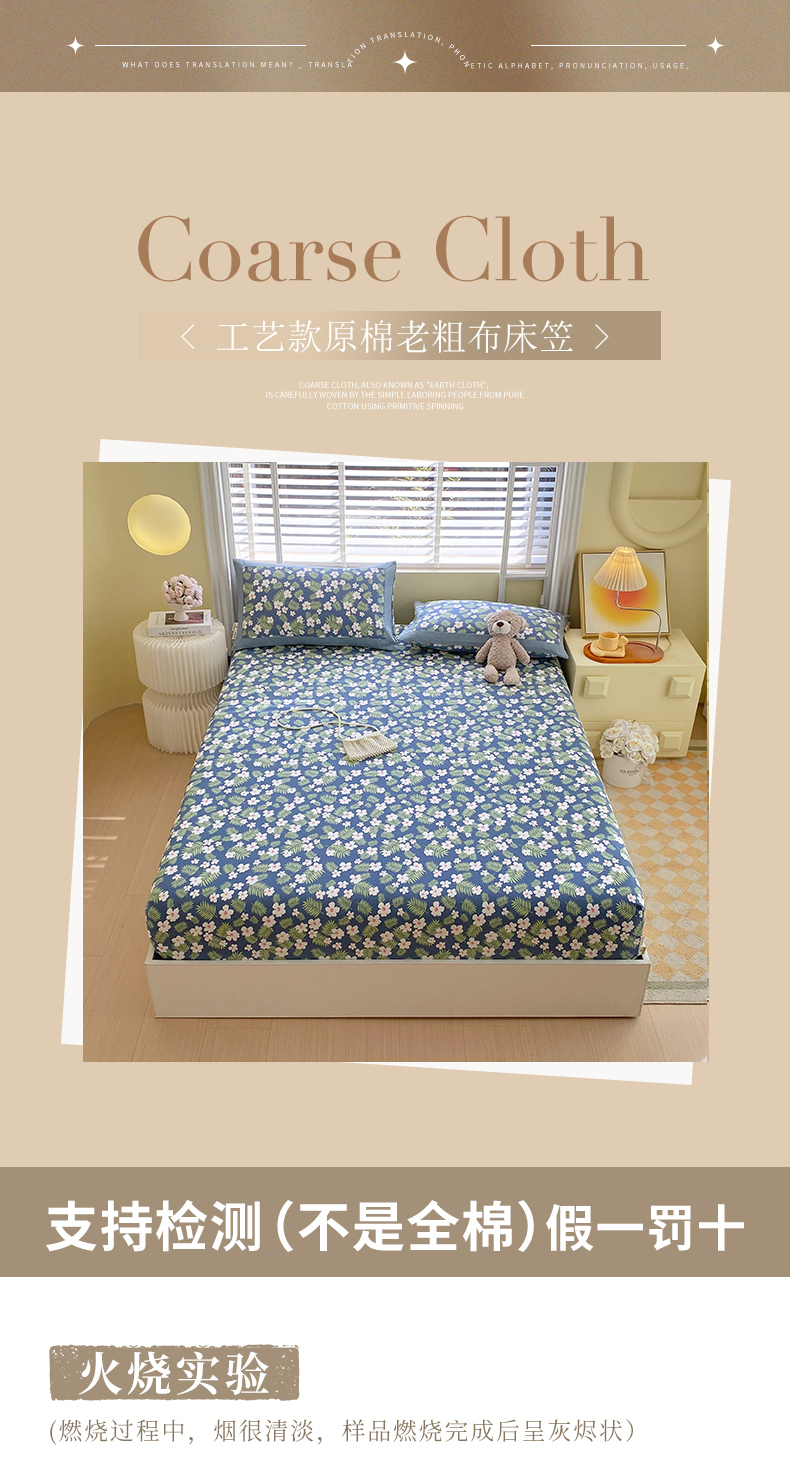 商品名称:春皖家纺 2026新款全棉老粗布工艺款单床笠床笠单件 沁香蓝
