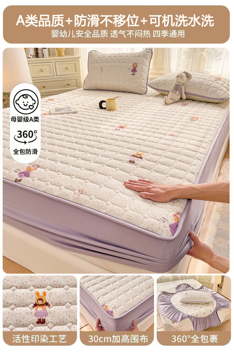 优品惠 2026新款A类云感双层纱防滑隔脏防水夹棉床笠单品床笠单件 CL薰衣草(防水款)