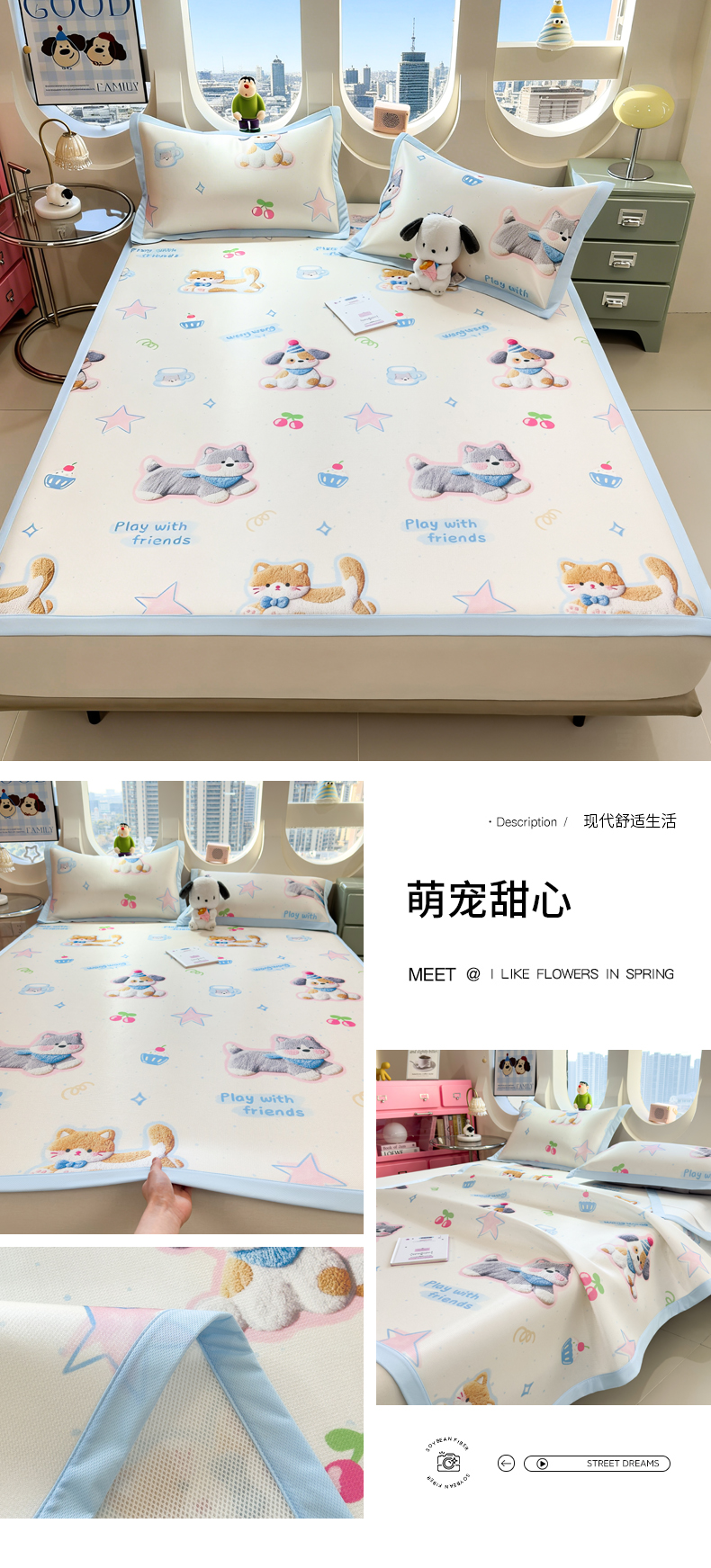 (总)丝羽坊 2026新款小版印花碳光冰丝凉席床笠款,星梦喵屋,蓝花熊语,小甜心,云漫花絮,兔宝,星光灿烂,彩色心愿,春日猫记,蛋糕猫,黑蝴蝶,花甜猫,绿叶,猫叙花间,萌宠甜心,小犬时光,幸运企鹅,叶语