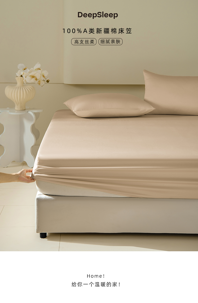 佳汐蓝家纺 2026春夏新款贡缎长绒棉纯棉单床笠 床笠单件 浅香槟