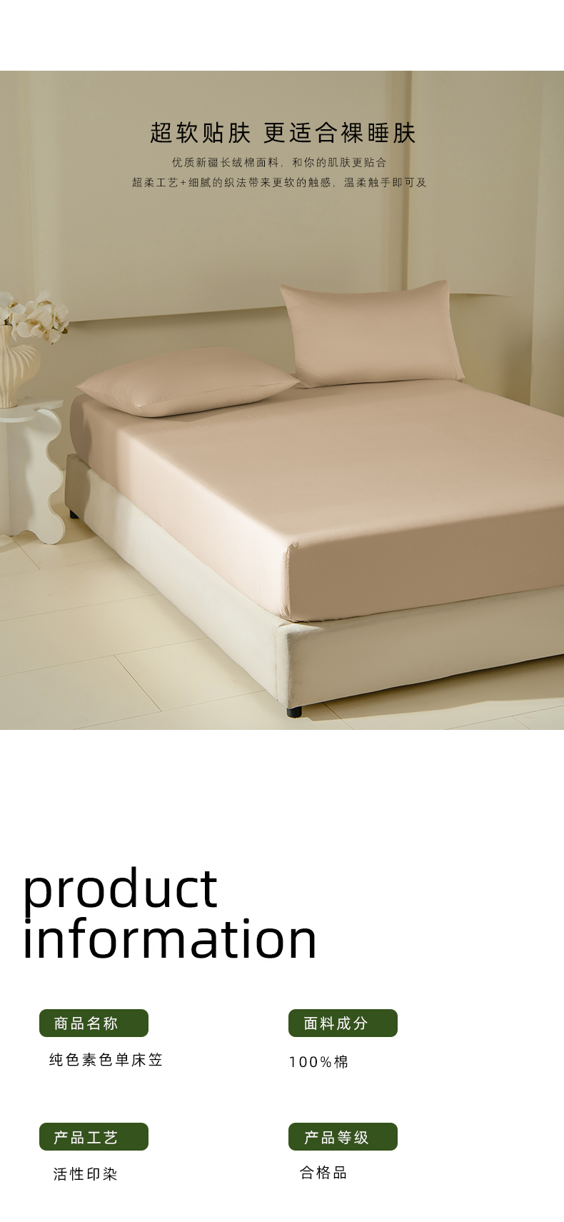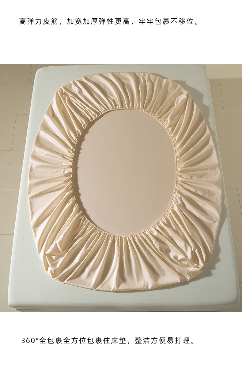 商品名称:佳汐蓝家纺 2026春夏新款贡缎长绒棉纯棉单床笠 床笠单件 浅香槟