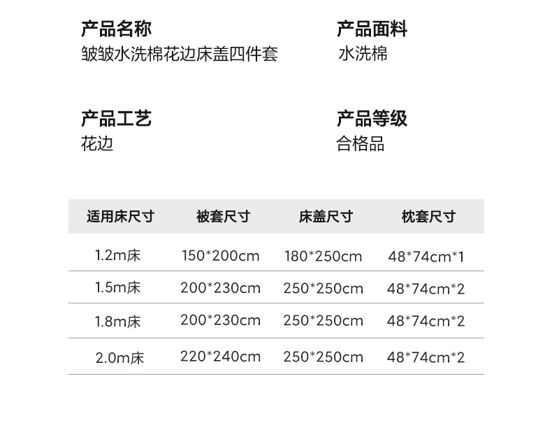 【床盖款】2.0四件套-被套220x240-床盖250x250-48x74cm枕套一对 | ¥90.00 |