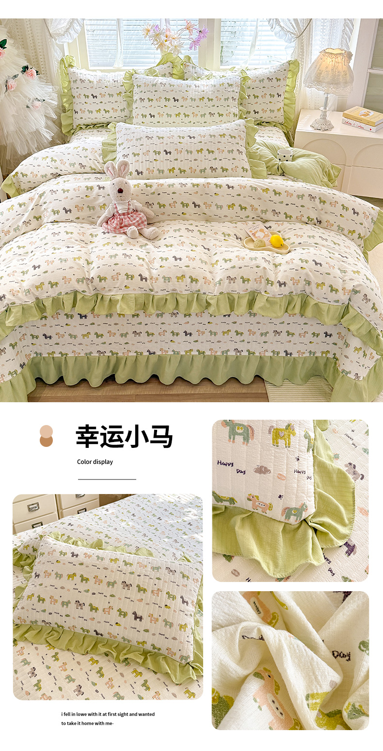 当前位置: 91家纺网 > 商品网购 > 床品套件 > 四件套 > 水洗棉四件套 > 唐人居 2026春夏新款皱皱水洗棉花边床盖四件套 彩色波点