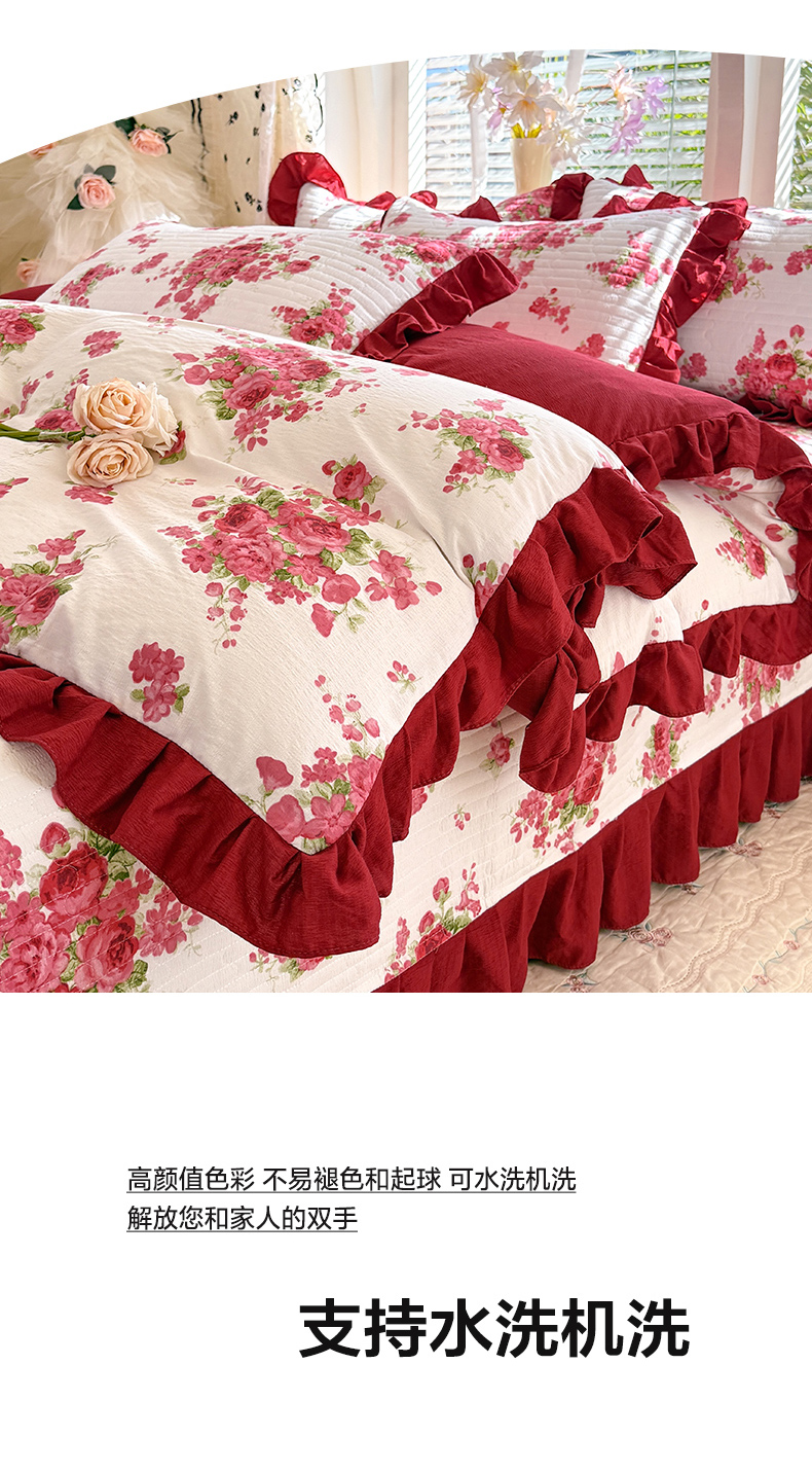 当前位置: 91家纺网 > 商品网购 > 床品套件 > 四件套 > 水洗棉四件套 > 唐人居 2026春夏新款皱皱水洗棉花边床盖四件套 音乐企鹅