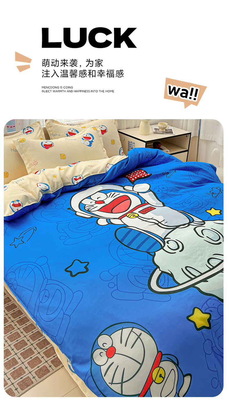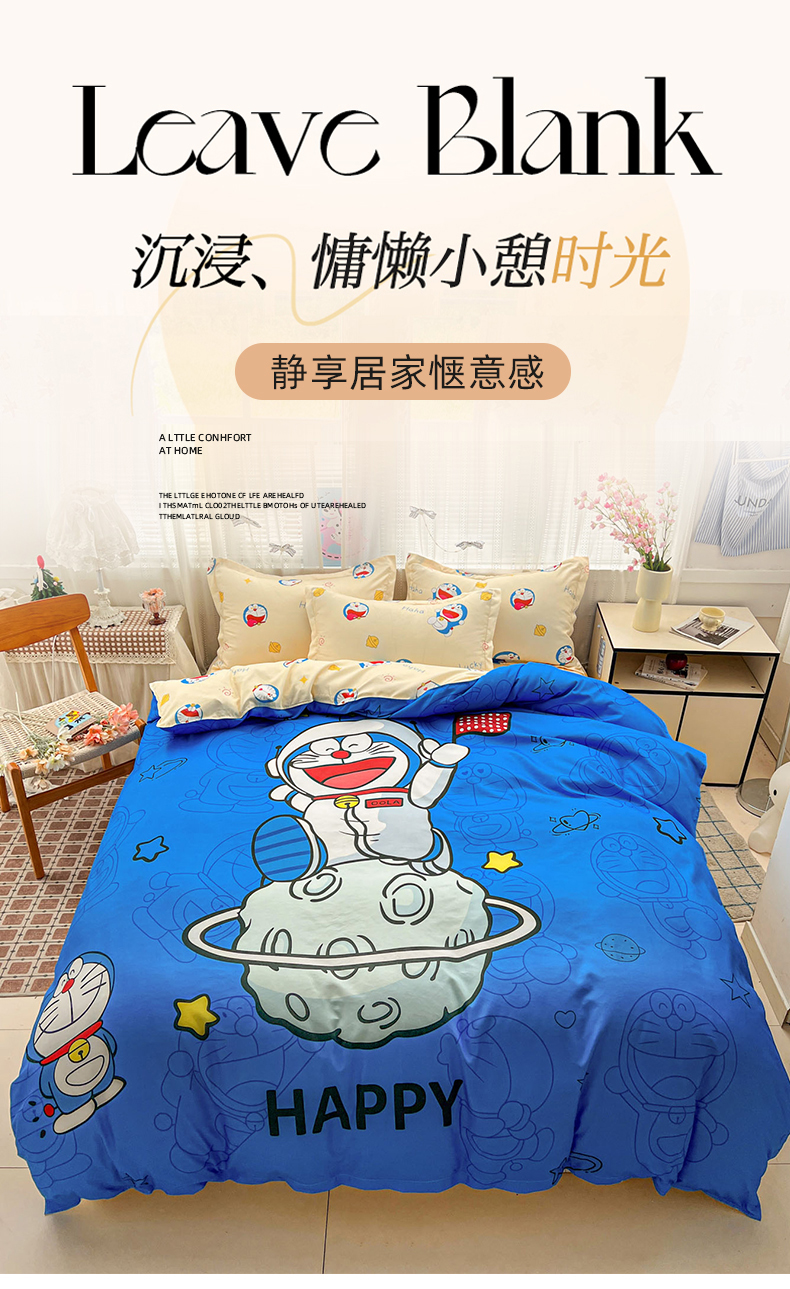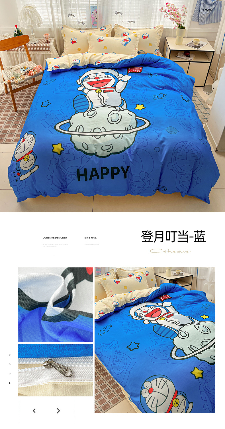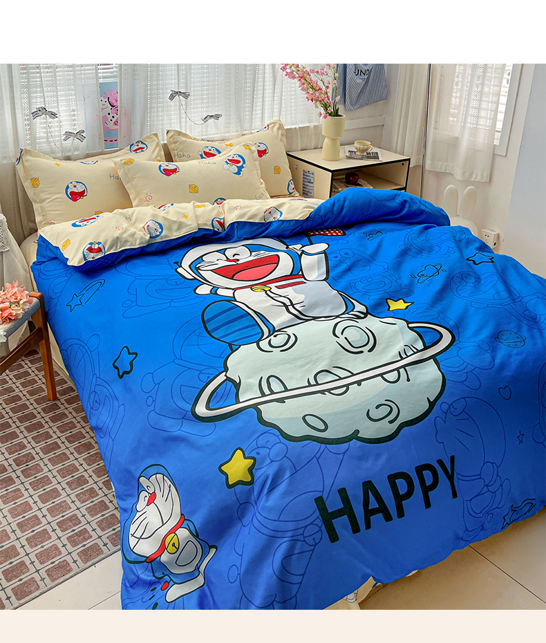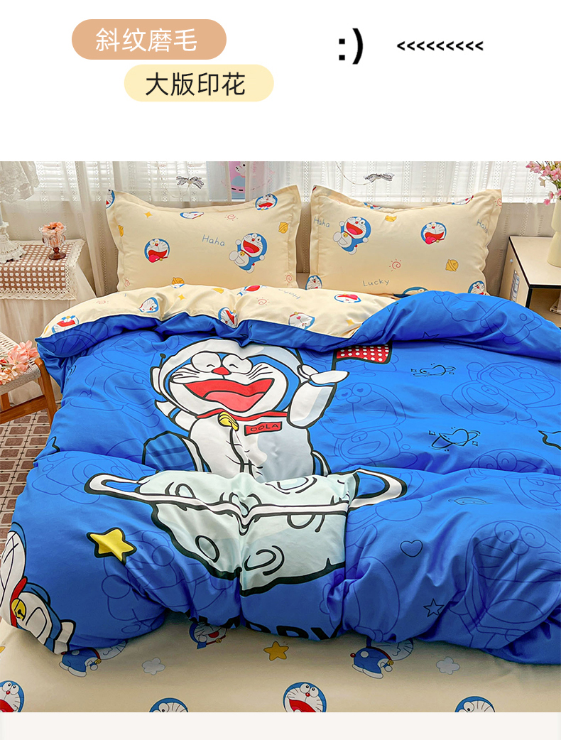 当前位置: 91家纺网 > 商品网购 > 床品套件 > 四件套 > 磨毛活性四件套 > KT猫直营店 2026新款卡通斜纹磨毛大版四件套 登月叮当-蓝