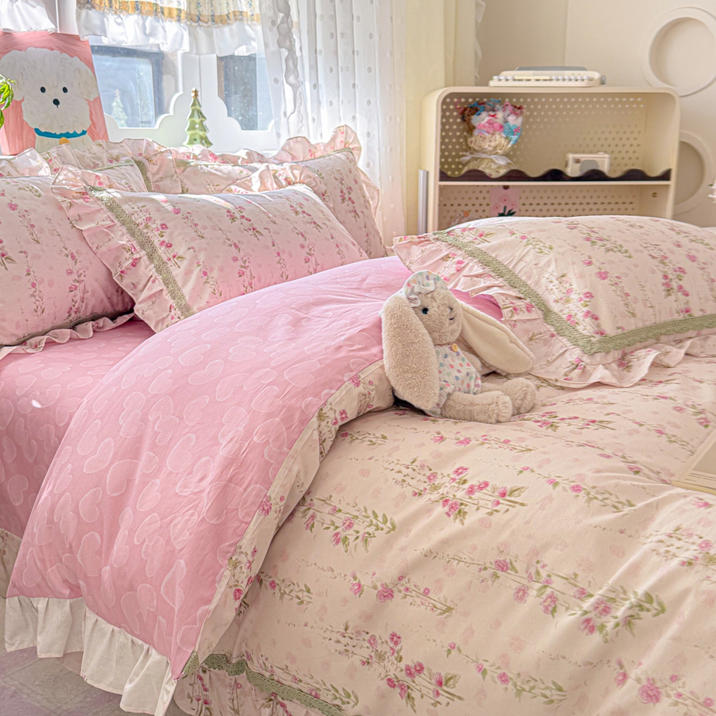 (总) 眠屿 2023春夏新款全棉蕾丝对角花边四件套,芭蕾世界,草莓小兔,草莓之恋,丁香兔,粉韵,花颂,花仙兔,花野兔,桔园,苏阳,田园奇遇,遇见浪漫,知南