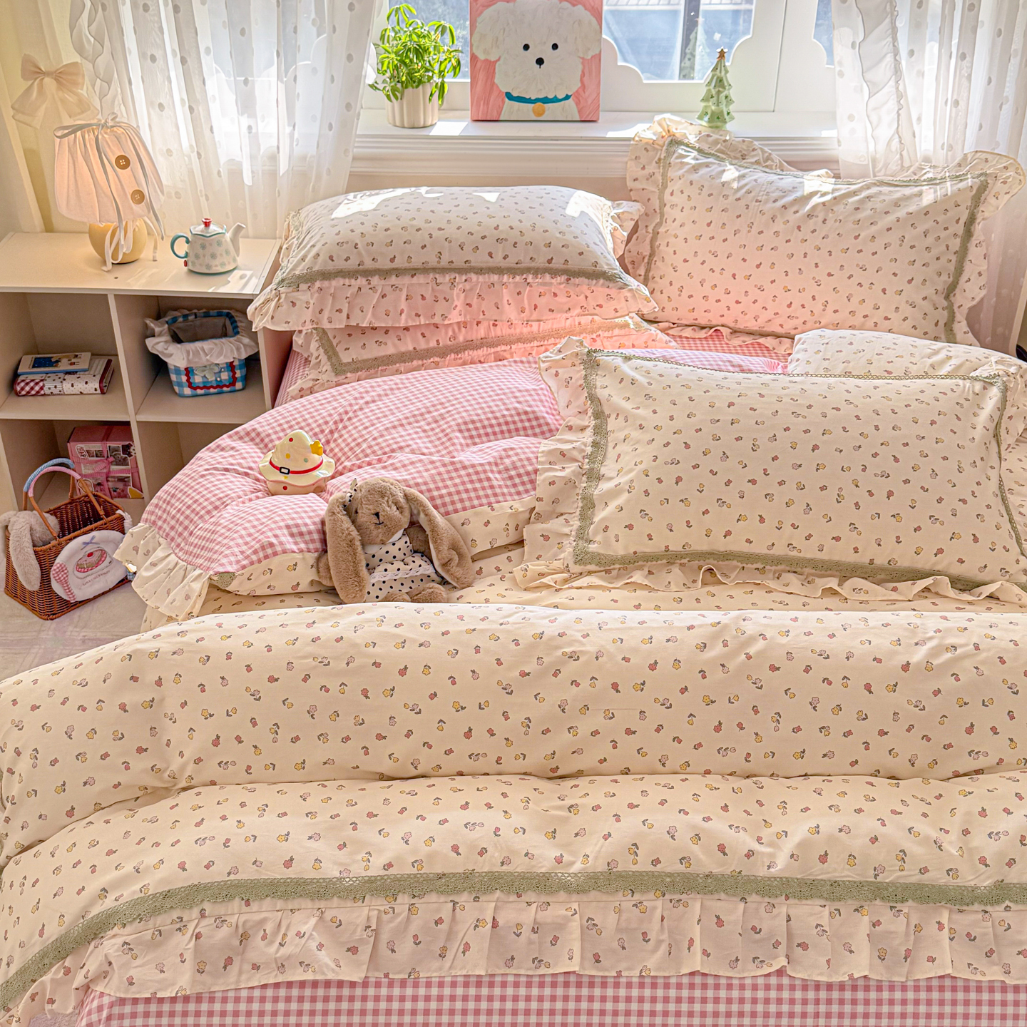 (总)眠屿 2022新款全棉小碎花法式花边四件套,春婵,芳华,韩式小花,花间兔,花开半夏,花叶,蓝花兔,罗曼花语,绿萌,梦妆花园,硕果,春华秋实,菲菲兔,花丛间,捧花熊,硕果,田园物语,甜趣草莓,樱桃小花,金色花语,四季芳香