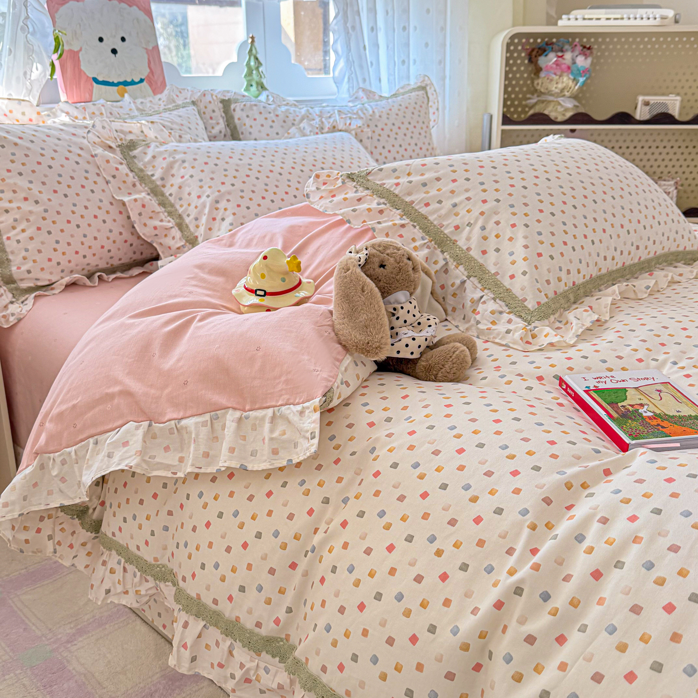 (总)眠屿 2023新款全棉花边四件套-kt猫,爱心KT,波点KT,多彩KT,粉格KT,蝴蝶结KT,花花KT,伙伴KT,梦想KT,糖果KT,甜心KT,小熊KT,星星KT,幸福KT,音乐KT,紫格KT
