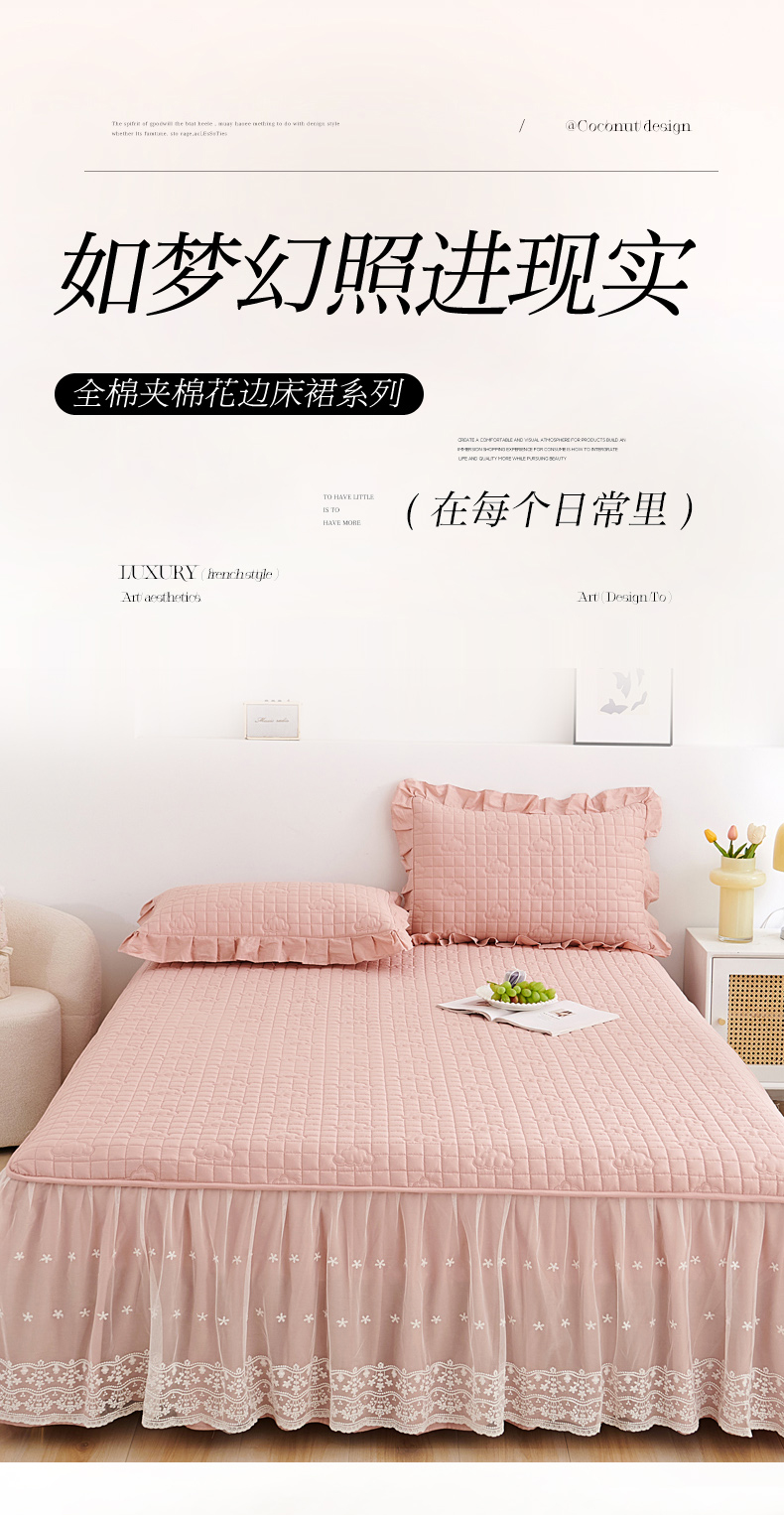(总)沁童儿童用品店 2026新款全棉纯棉夹棉花边床裙系列,白色,淡粉色,黄色,墨绿色,深棕色