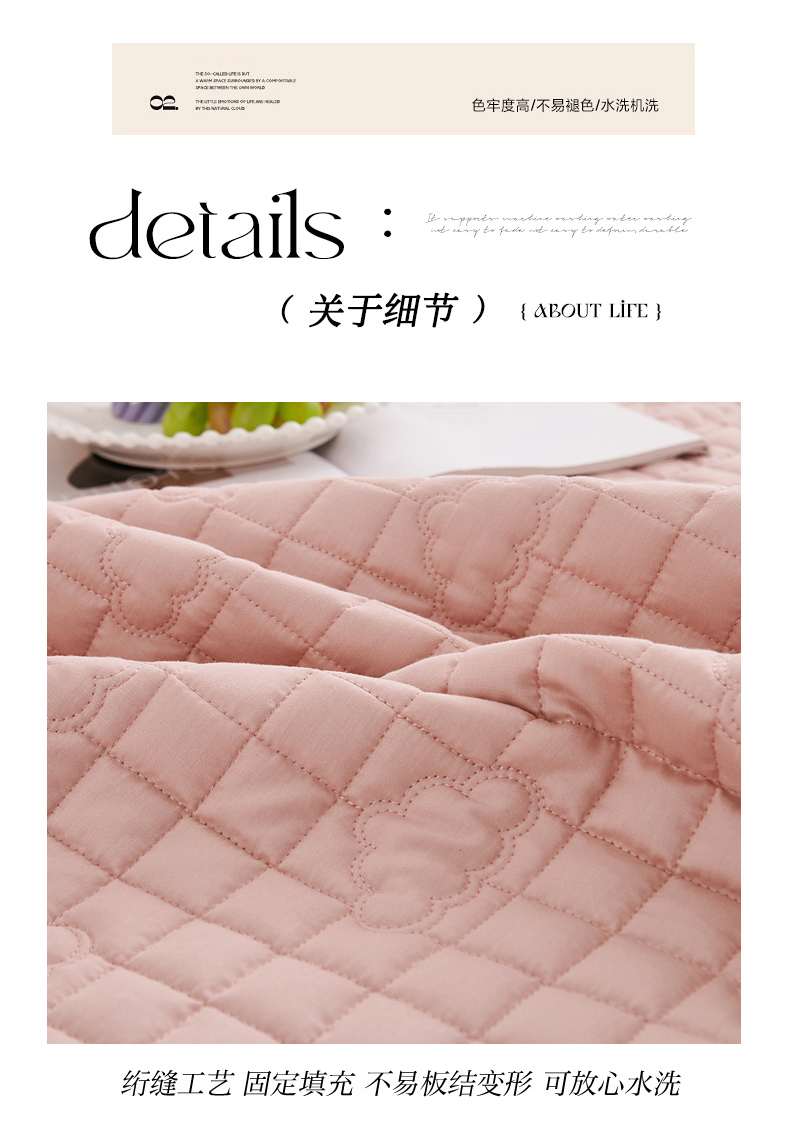 (总)沁童儿童用品店 2026新款全棉纯棉绗绣夹棉花床笠单件单床笠,宝蓝,豆沙,粉色,灰色,绿灰,米黄,深绿,驼色