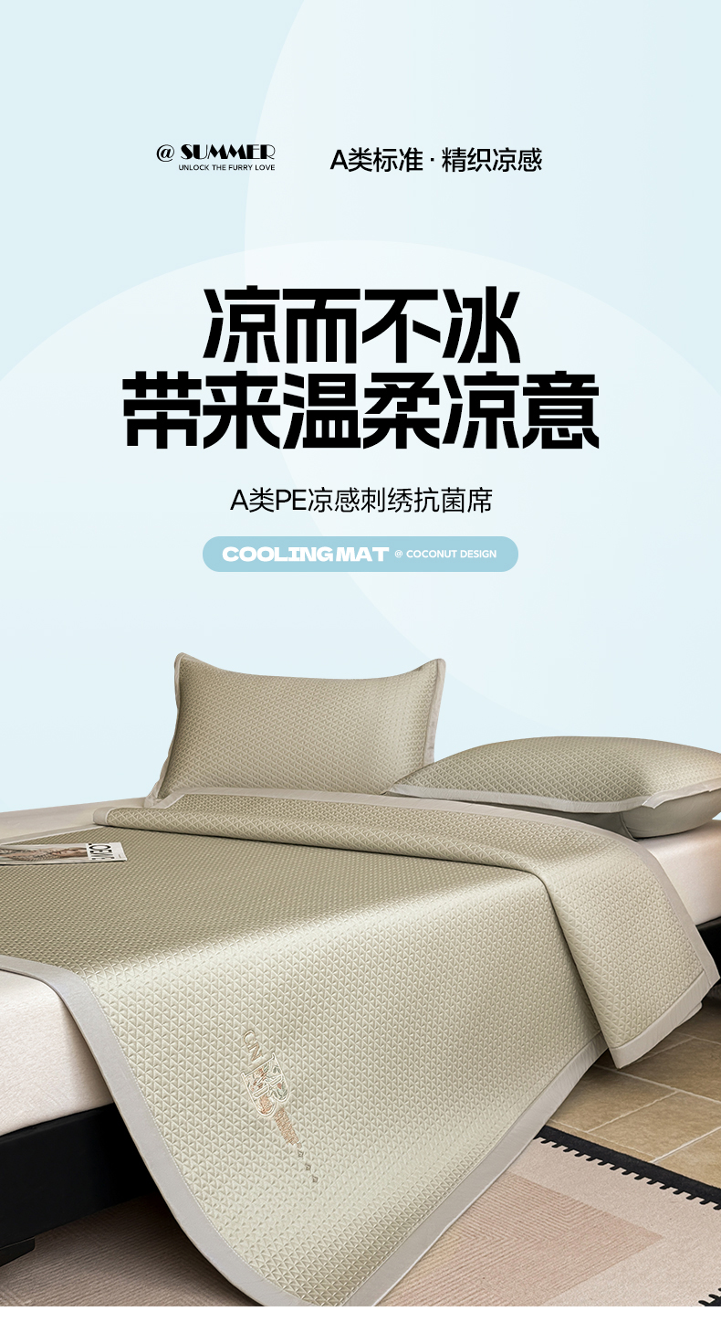 鑫姿席业 2026新款A类PE凉感抗菌席凉席席子-几何花静系列 几何花境-咖(床垫款)