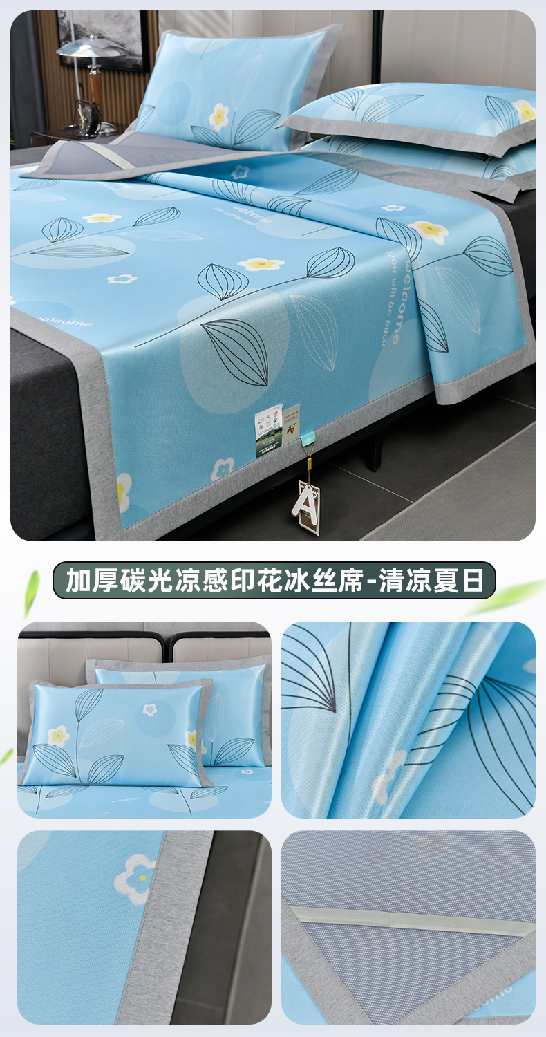 商品名称:小牛席业 2026新款加厚款碳光凉感印花冰丝席凉席席子 清凉夏日