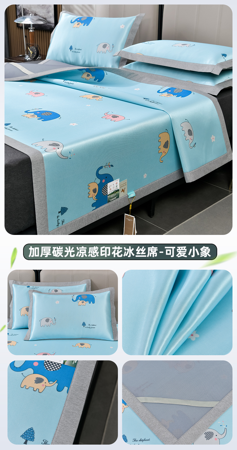 (总)小牛席业 2026新款加厚款碳光凉感印花冰丝席凉席席子,贝贝熊,彩色煤球,花间集,花纹小熊,可爱小象,烂漫山茶花,琉璃叶语-粉色,琉璃叶语-灰色,琉璃叶语-蓝色,琉璃叶语-绿色,轻奢赫本,清凉夏日,清新叶语-灰,清新叶语-绿,清馨玫瑰,仙仙草,小号南瓜,熊猫胖哒,椰树大象