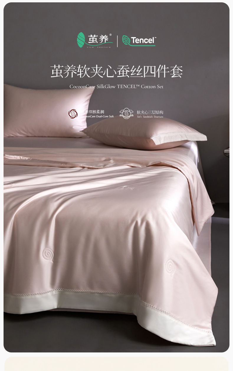 金奇达家纺 2026新款茧养软夹心蚕丝四件套-丝颜悦色(标准号全网控价(折后券后)不低于299元 单夏被会员-40元 四件套会员-30) 丝颜悦色-缦豆沙