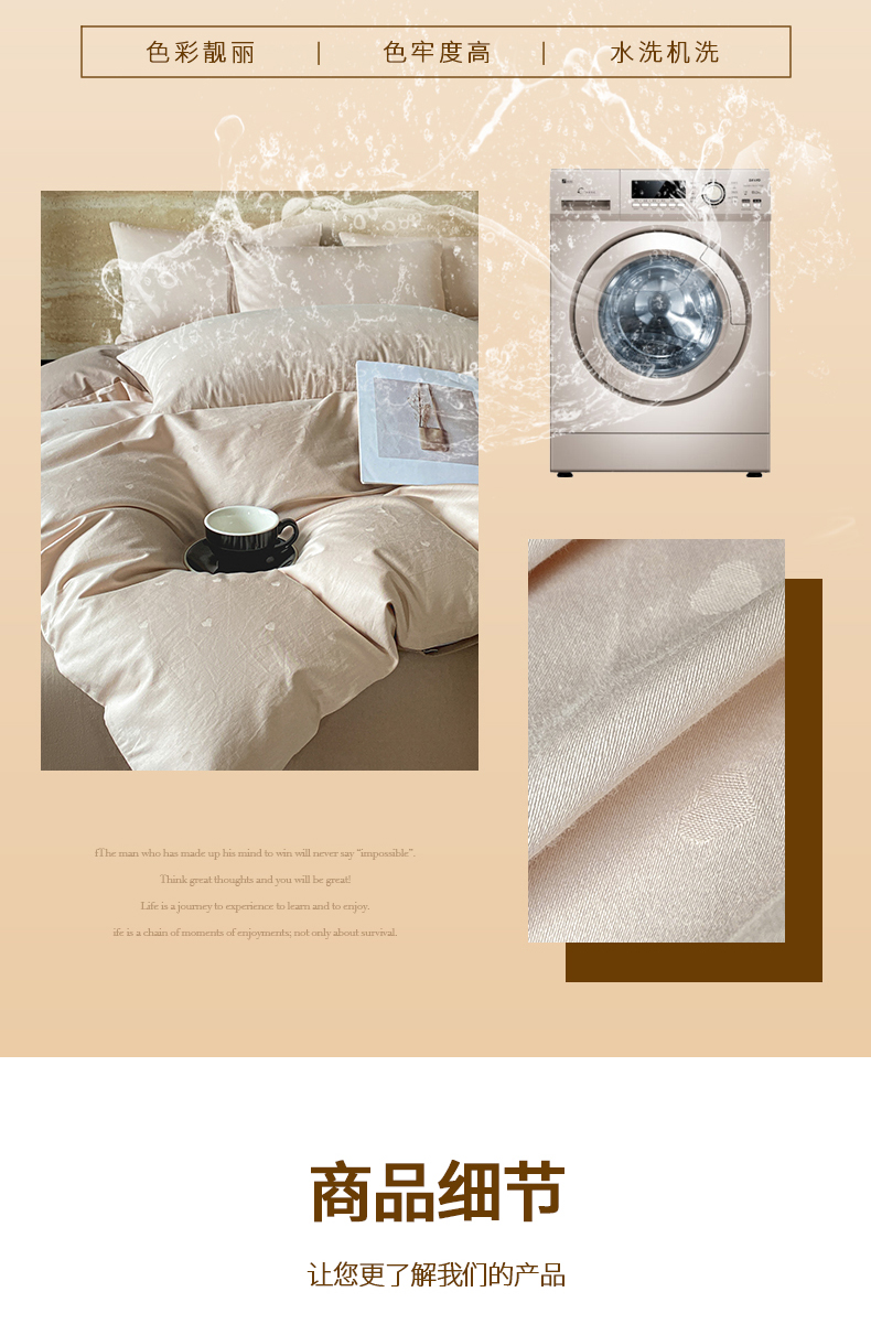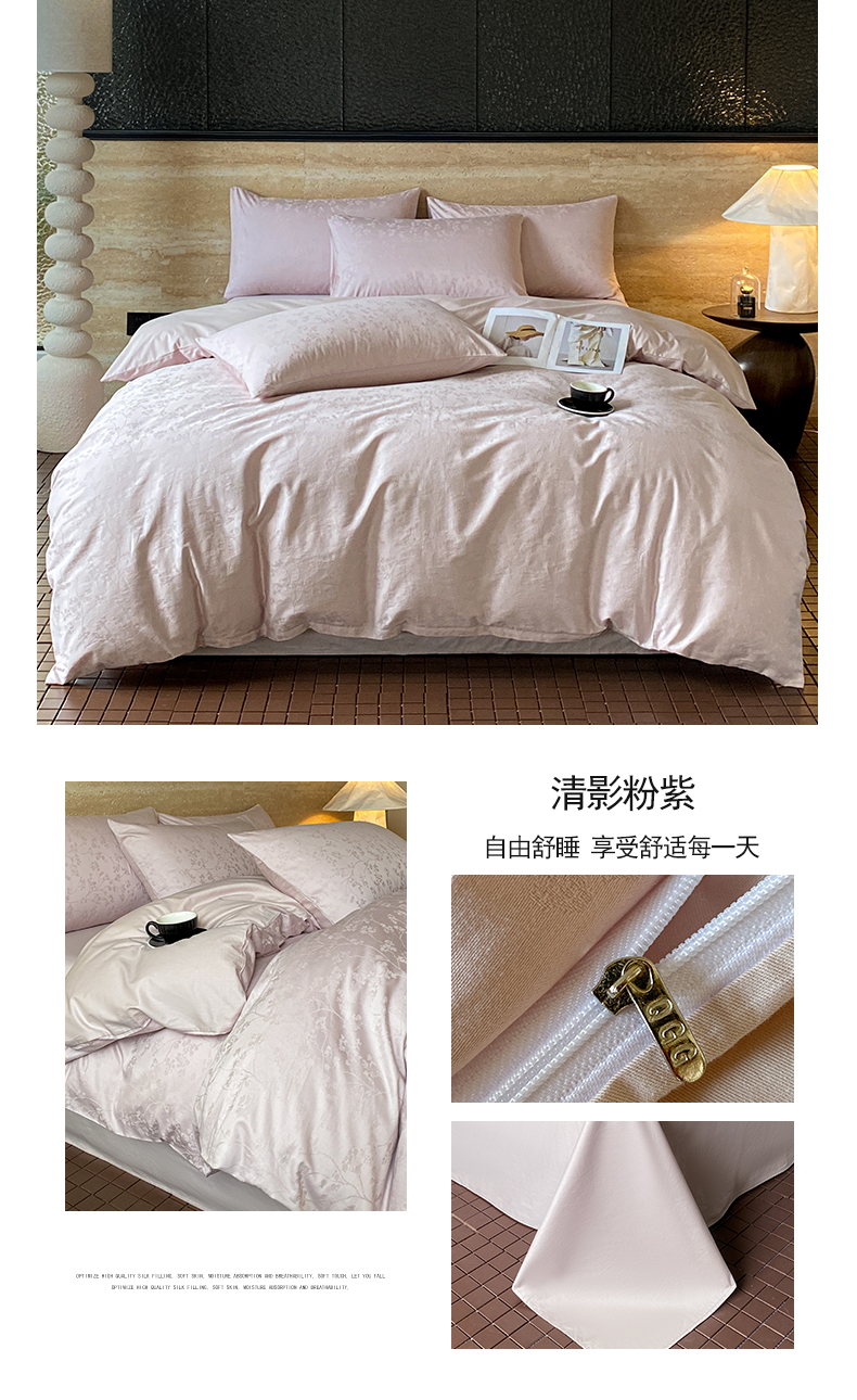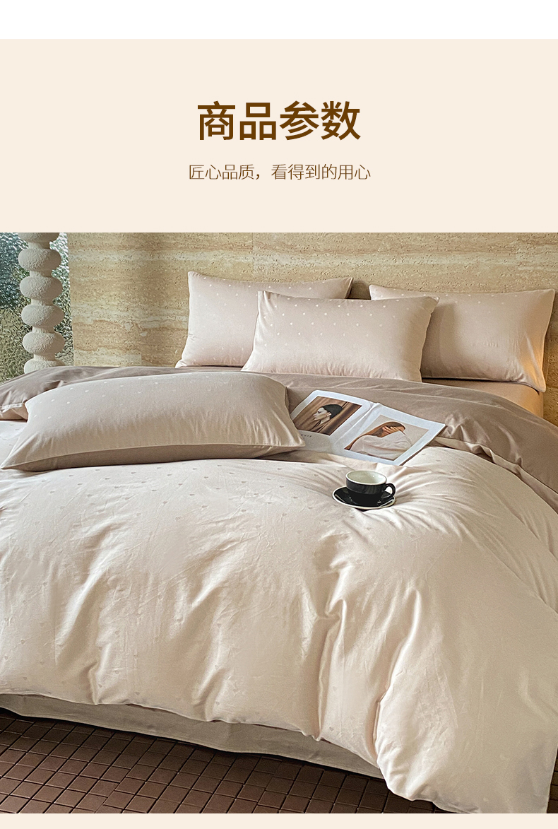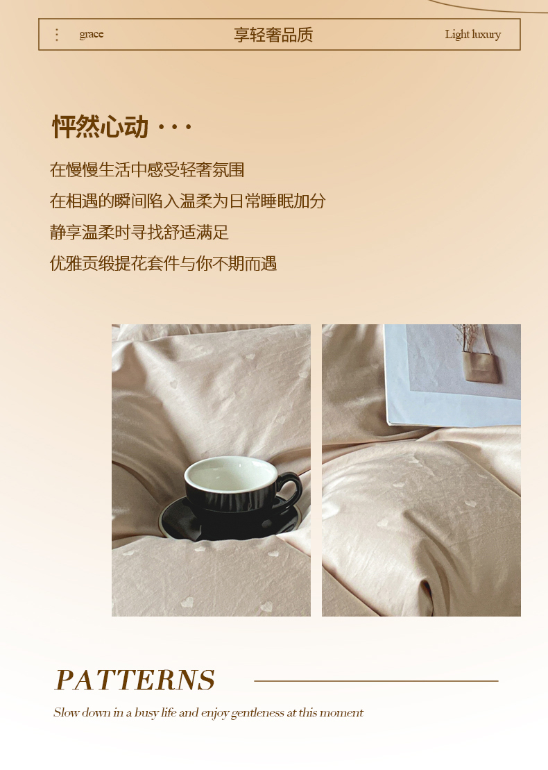 当前位置: 91家纺网 > 商品网购 > 床品套件 > 四件套 > 全棉普通四件套 > 琪格格纺织 2026新款纯棉全棉60s贡缎轻奢大提花四件套 纯棉贡缎 小爱心浅咖