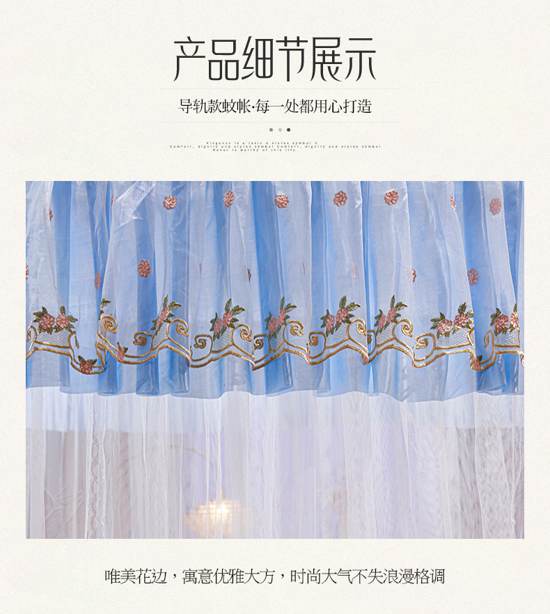 商品名称:舞夜盛世 2026新款超大空间加密加厚导轨款蚊帐-D-01 D-01-蓝白