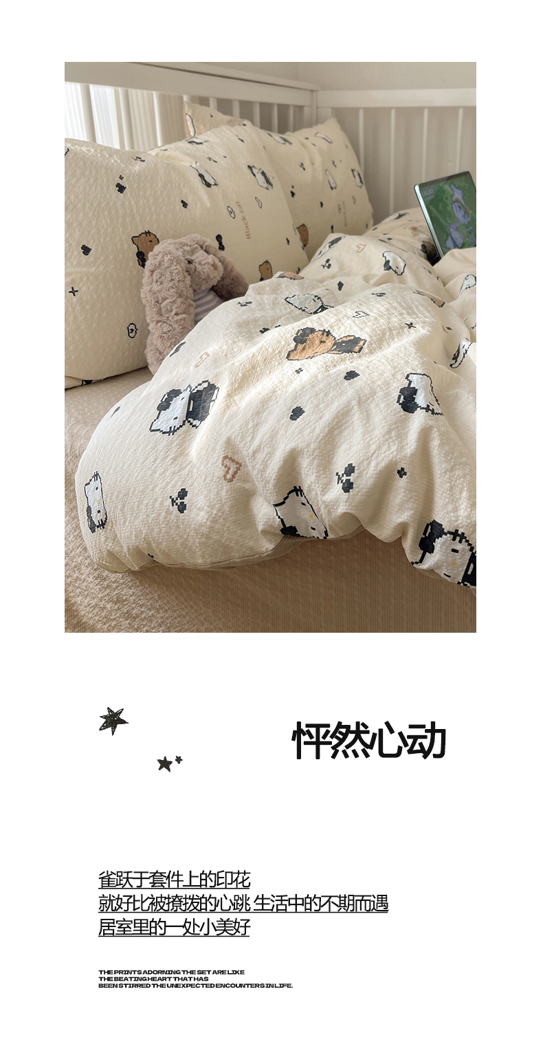 当前位置: 91家纺网 > 商品网购 > 床品套件 > 四件套 > 其它四件套 > 贝扬思家纺 2026新款高品质A类泡芙纱普通款四件套-110g-(软软糯糯小红书推荐~) 花径小狗团