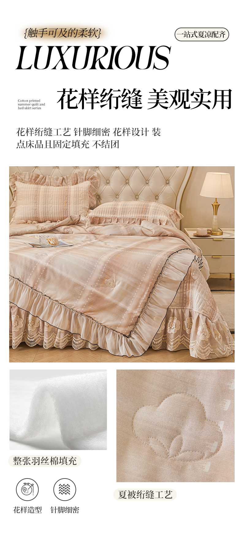 (总)宜凡家纺 2025新款全棉数码印花床裙三件套系列一,静若幽兰,浮云织梦,梦幻花园,陌上花开