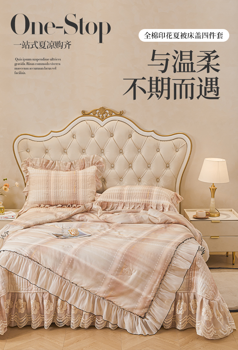(总)宜凡家纺 2026新款全棉数码印花夏被床盖四件套格子系列
