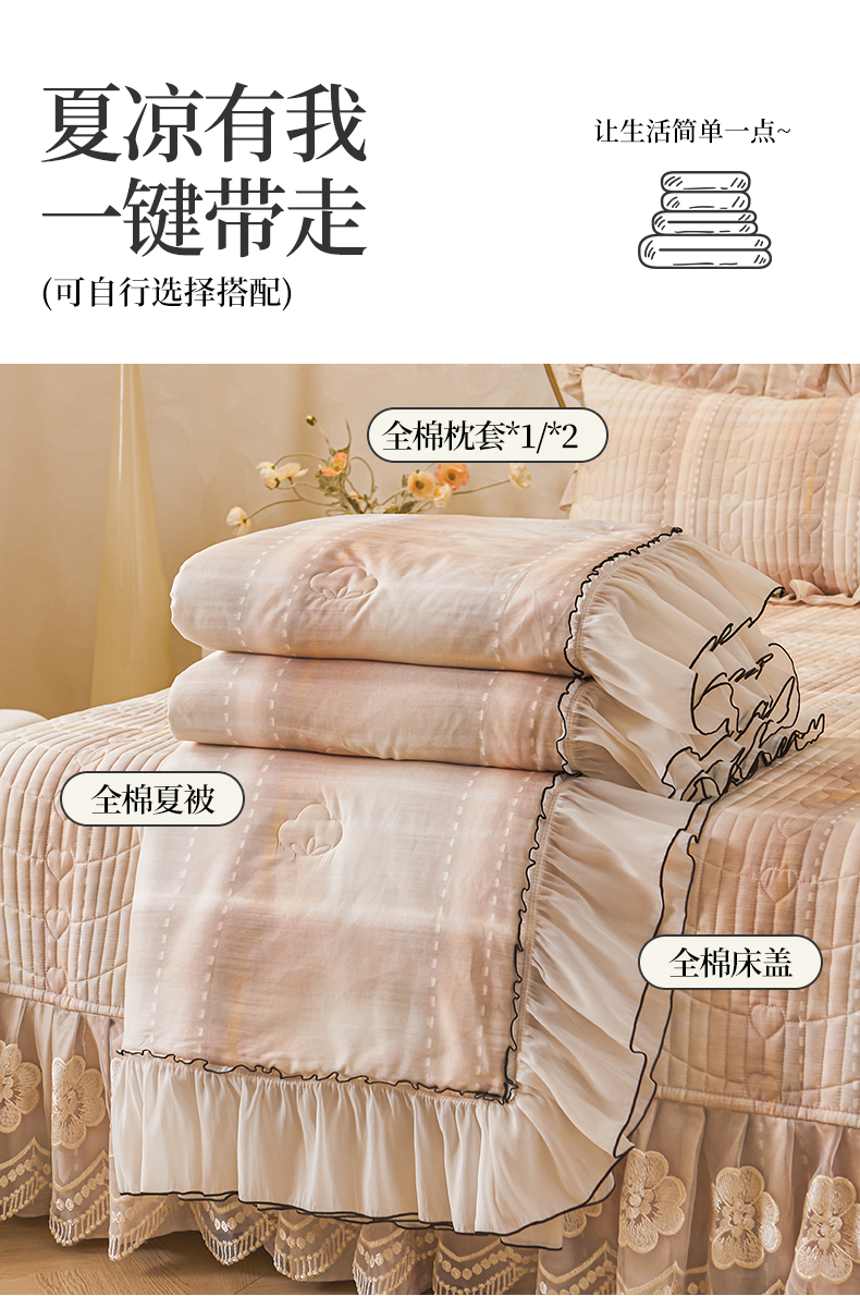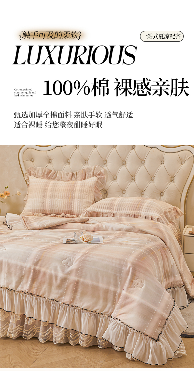 (总)宜凡家纺 2026新款全棉数码印花夏被床裙四件套格子系列,光之羽 粉,光之羽 绿,光之羽 紫