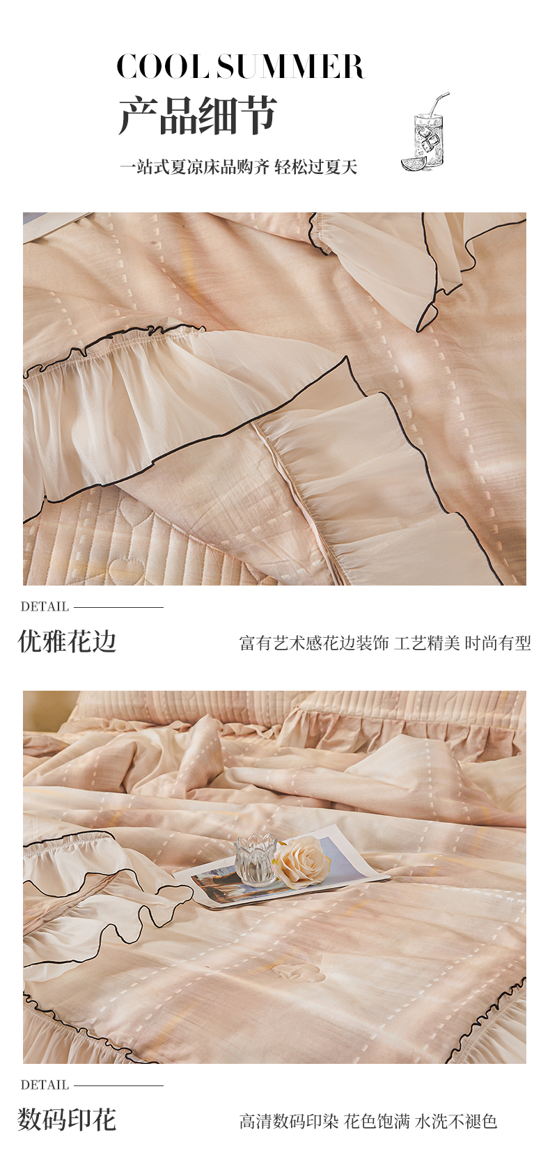 (总)宜凡家纺 2026新款莱赛尔天丝印花床裙夏被四件套,海棠碎影,海棠听风,兰枝玉树,蓝铃风语,鸢尾幽梦,栀子花年