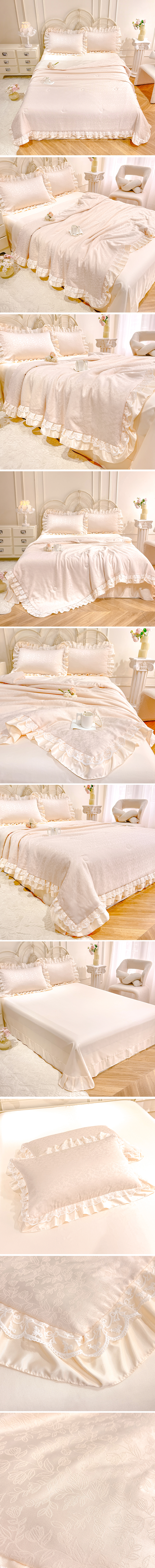 商品名称:优贝家纺 2026春夏新款提花水洗天丝冰丝天丝韩版夏被夏凉被空调被四件套 梵希-米白