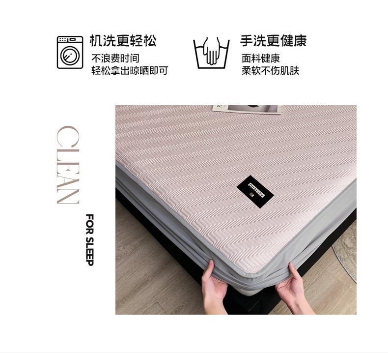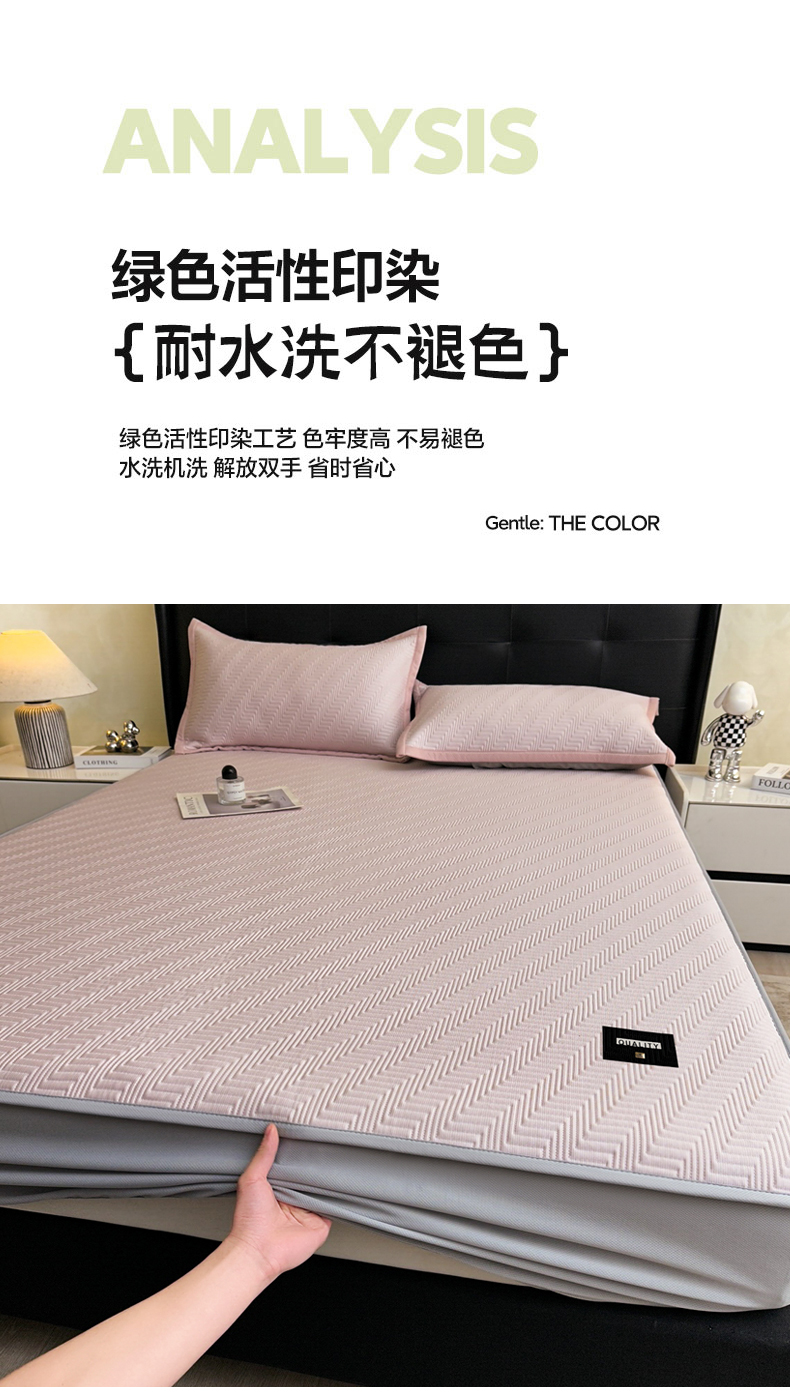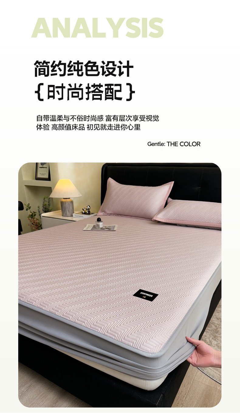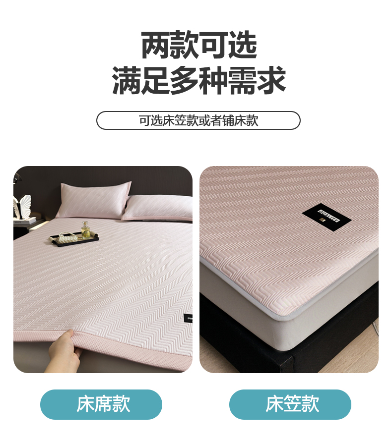 • 91家纺网 家纺一手货源 找家纺 慕木家纺 2026新款A类高克重三明治复合乙纶提花冰豆豆凉席床笠冰棱斜纹系列(提供买家秀) 冰棱斜纹-粉床笠款