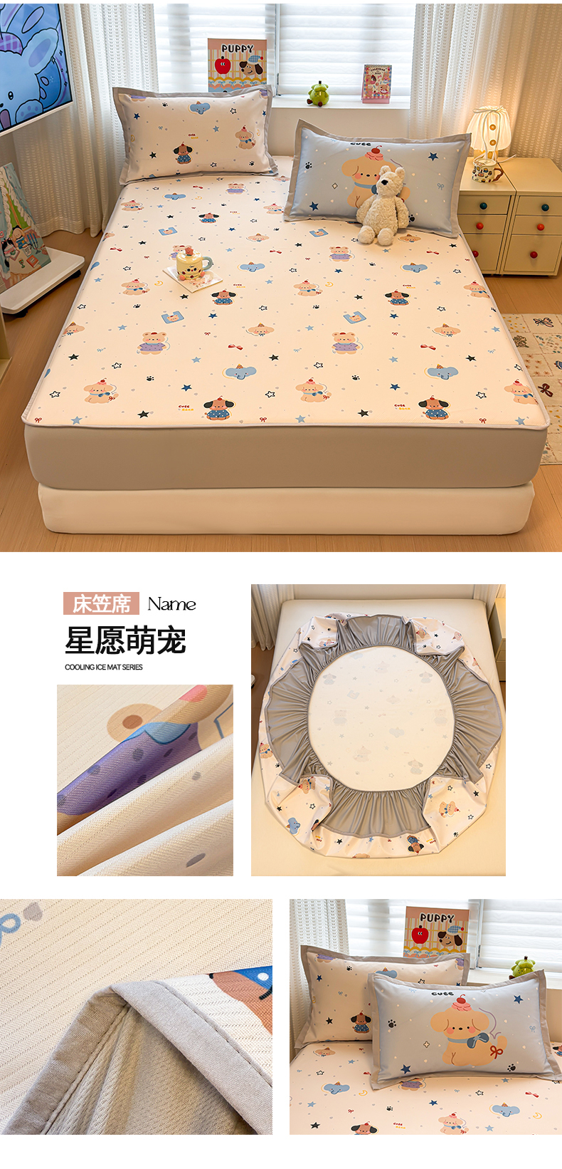 商品名称:懒猫家纺 2026新款卡通凉感冰丝床笠款凉席 床笠席-冰淇淋小狗