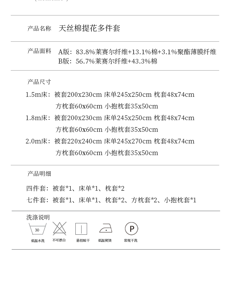商品名称:(总)100S天丝棉提花镂空四件套可定制规格