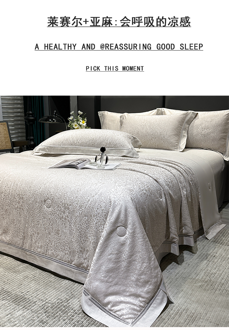 (总)欧夏家纺 2026新款莱赛尔天丝雅麻大提花镂空夏被空调被夏凉被夏季薄被子直播供货外贸,宾利蓝,爵士咖,清新绿,优雅玉