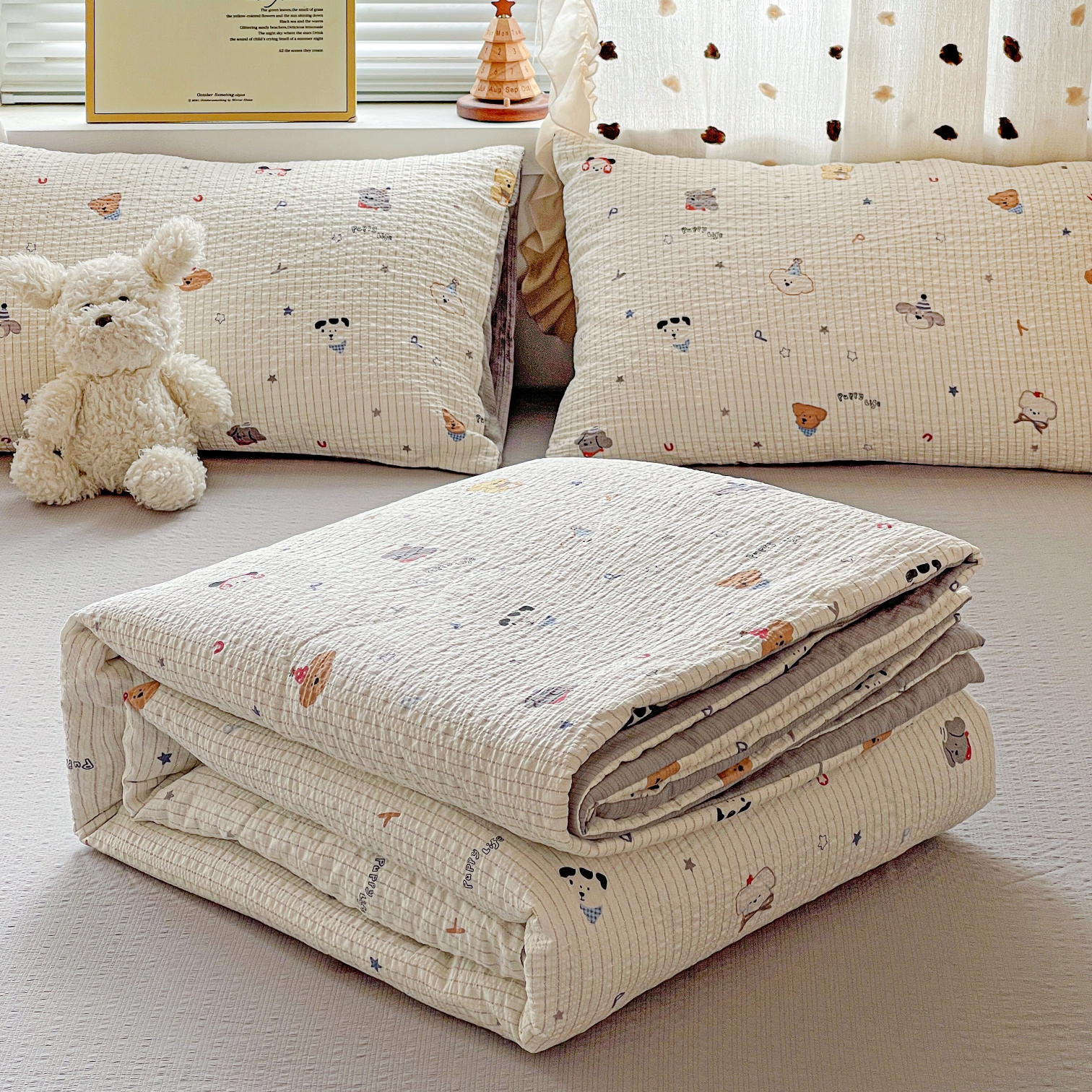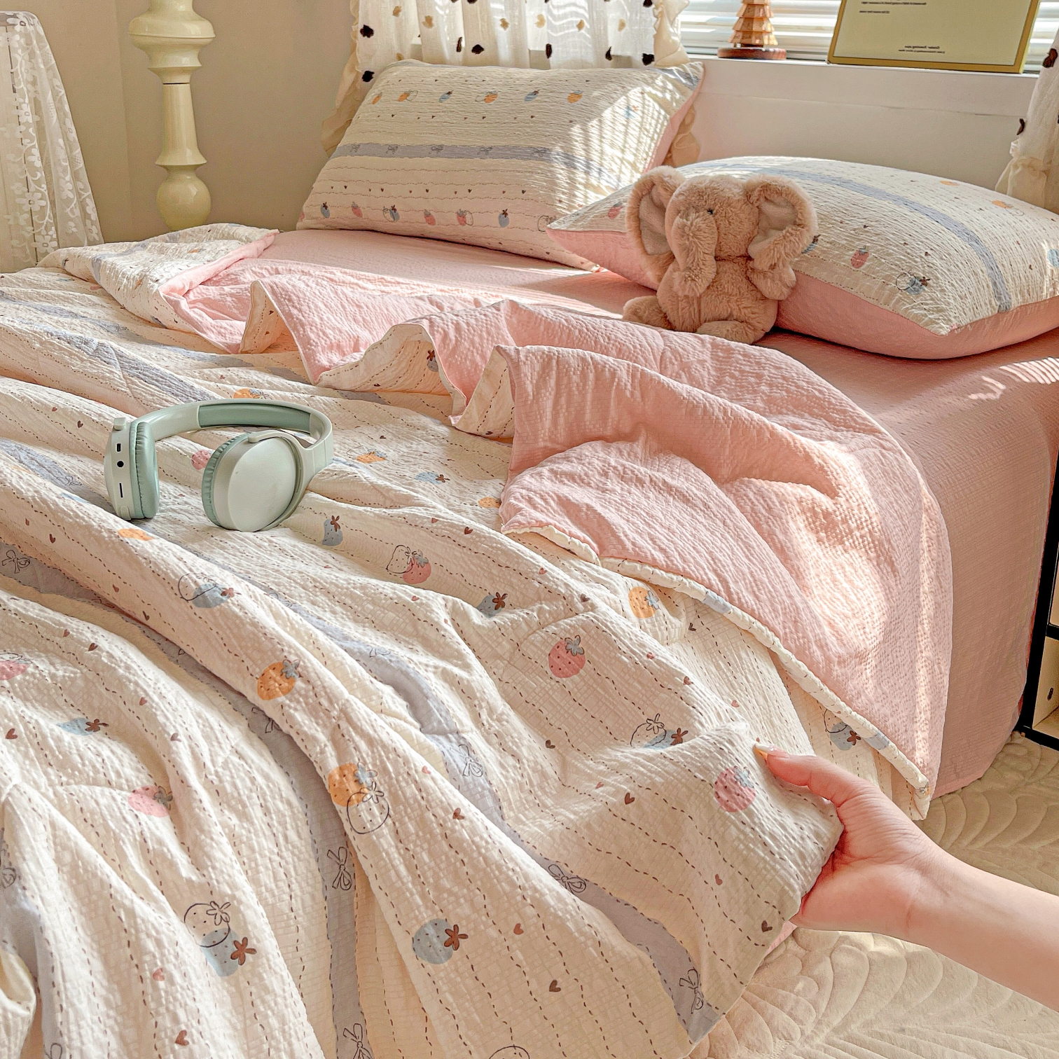 (总)一比一家纺 2026新款泡芙纱简款夏被四件套,安妮,草莓恋语,春日小兔,花藤小兔,咖啡狗,浪漫彩蝶,玫瑰之恋,素锦,小黄鸭,心愿,星梦乐园,星星狗,熊博士,摇摇星人,樱桃波点,云朵泡芙,长耳兔,紫色花语,组合图仅供展示-不可下单