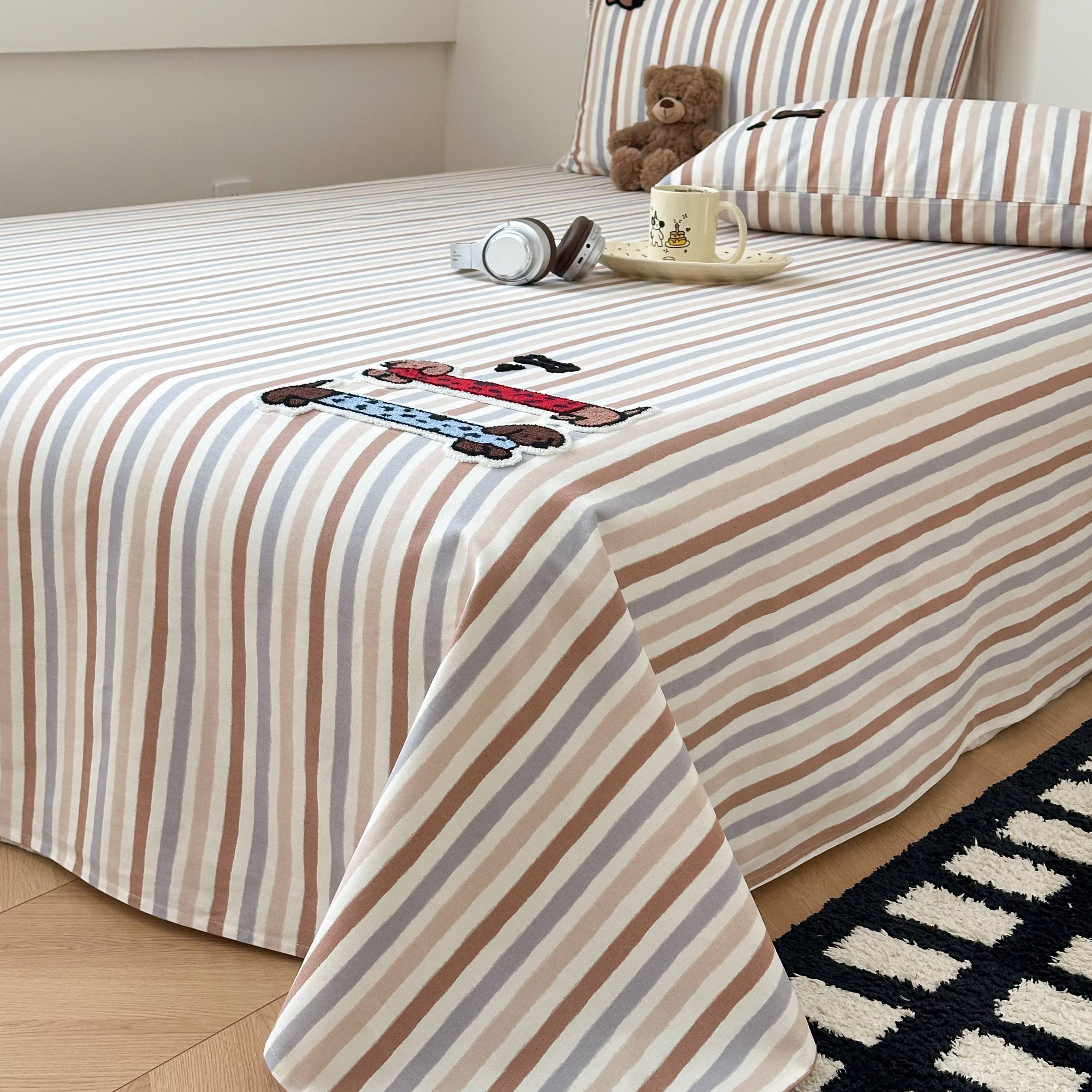 (总)珺柔家纺 2026新款全棉老粗布床单床笠三件套,Happy小狗,安睡熊,斑点狗,豹纹睡衣熊,咖条puppy,蓝豹纹小狗,蓝格苹果小狗,小可爱,幸运猫猫,音乐小猫,园丁小狗,朱迪